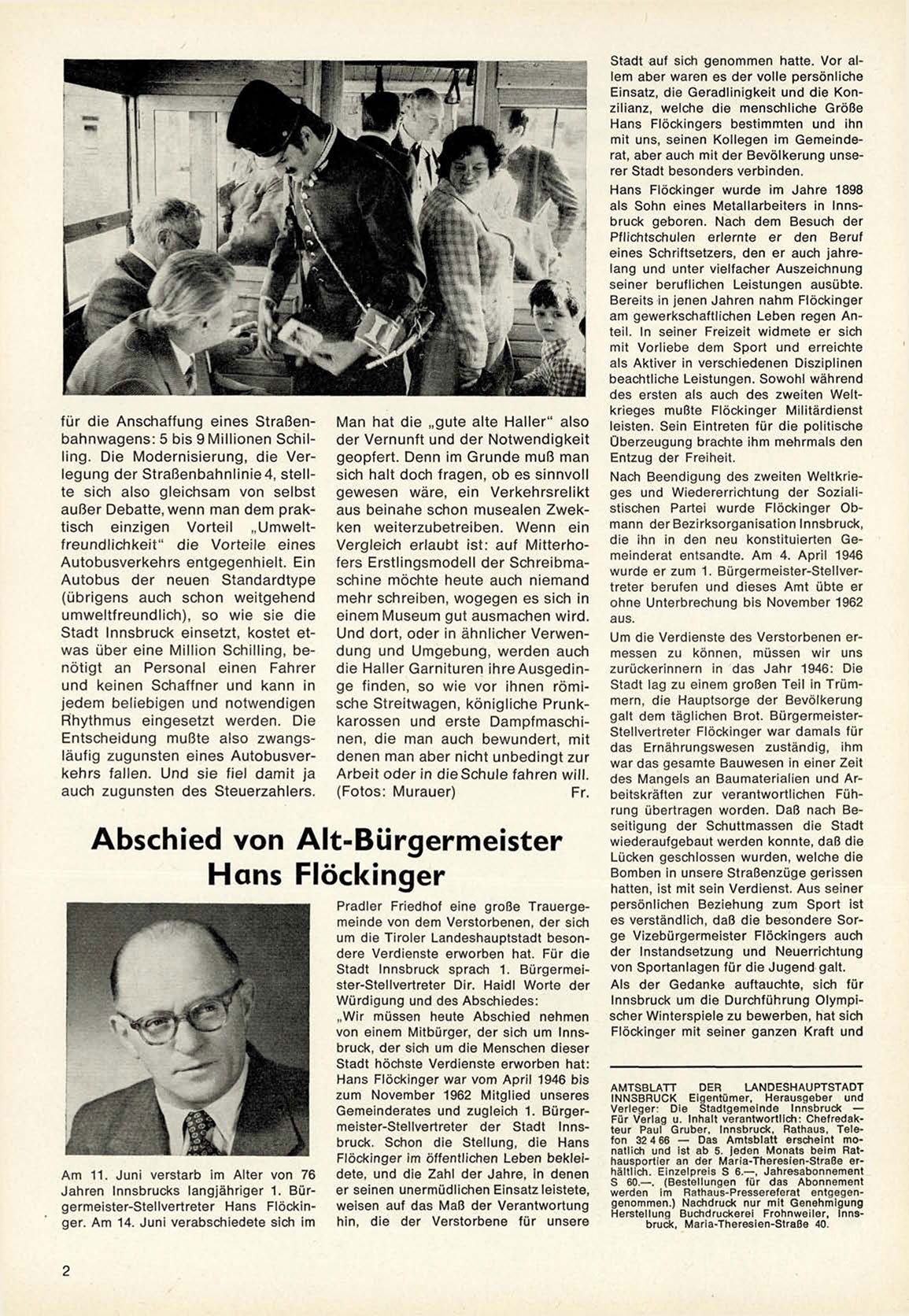 Für V e r l a g u. Inhalt v e r a n t w o r t l i c h : C h e f r e d a k teur Paul G r u b e r , Innsbruck, Rathaus, T e l e fon 32 4 66 — D a s A m t s b l a t t erscheint m o natlich und ist a b 5. jeden M o n a t s b e i m Rathausportier an der Maria-Theresien-Straße erhältlich. E i n z e l p r e i s S 6.—, J a h r e s a b o n n e m e n t