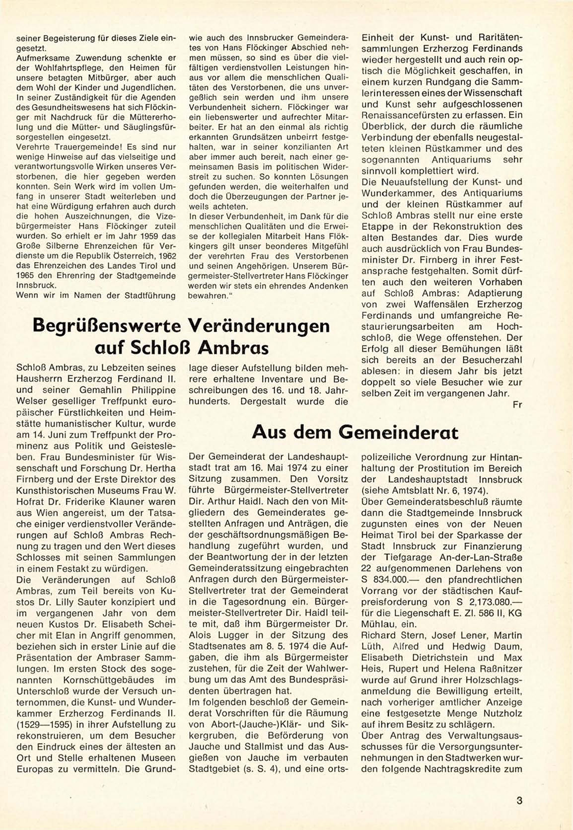 Der G e m e i n d e r a t der L a n d e s h a u p t stadt trat am 16. Mai 1974 zu einer