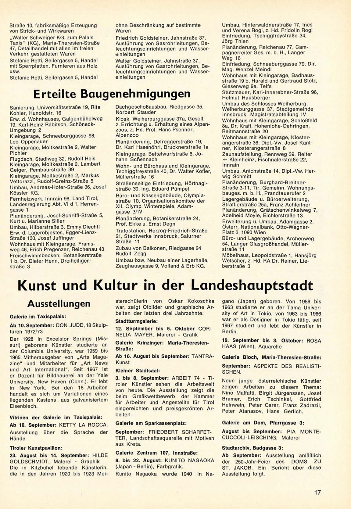 3. bis 8. September: A R B E I T 74 - T i roler Künstler s e h e n die A r b e i t s w e l t