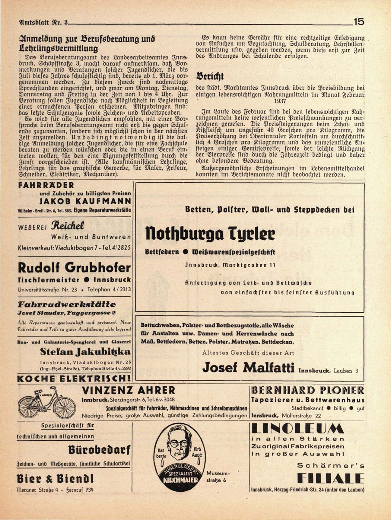 Das Berufsberatungsamt des Landesarbeitsamtes Innsbruck, Schöpfstraße 3, macht darauf aufmerksam, daß Vormerkungen und Beratungen solcher Jugendlicher, die bis