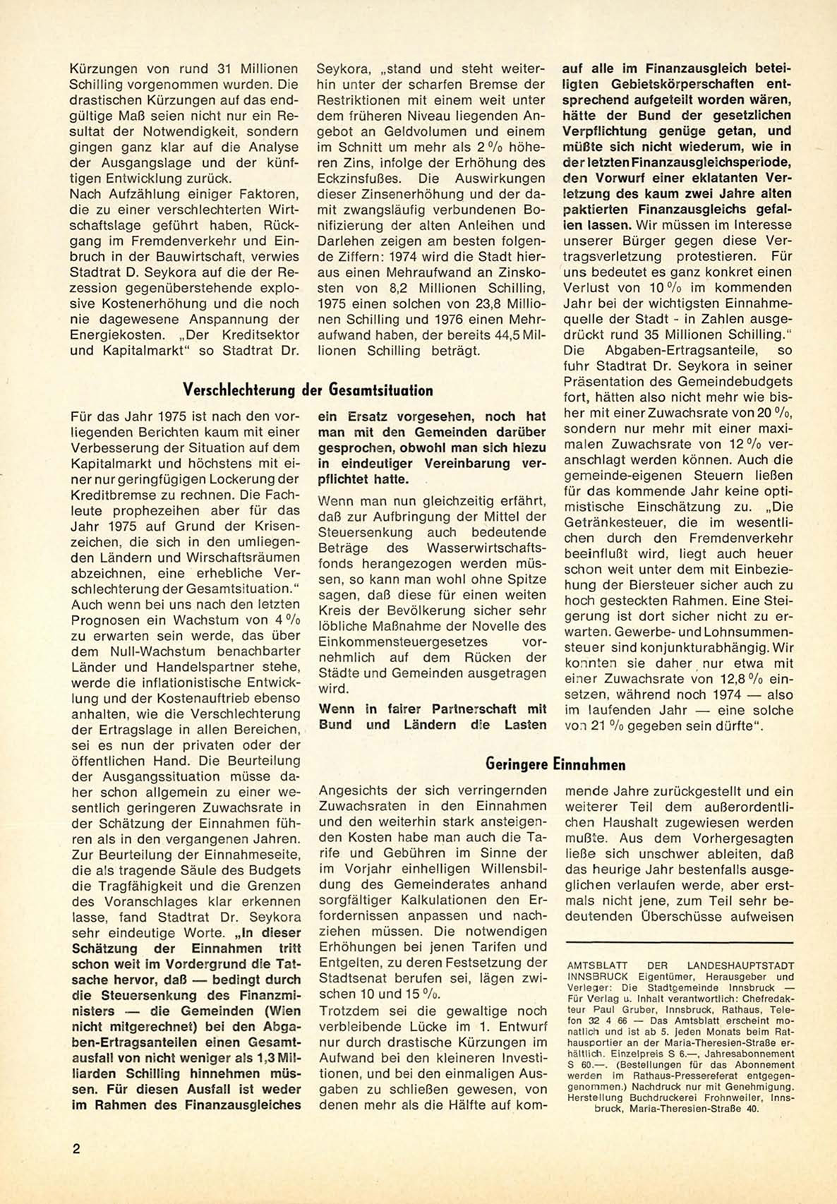 Für V e r l a g u. Inhalt verantwortlich: C h e f r e d a k teur P a u l Gruber, Innsbruck, Rathaus, T e l e fon 32 4 66 — Das Amtsblatt erscheint m o natlich und ist ab 5. jeden Monats beim Rath a u s p o r t i e r an der Maria-Theresien-Straße erh ä l t l i c h . E i n z e l p r e i s S 6.—, J a h r e s a b o n n e m e n t