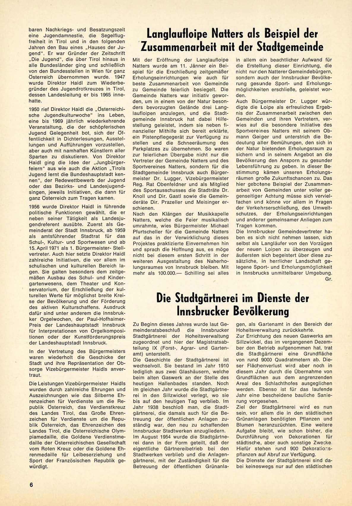 G e m e i n d e Natters w a r initiativ geword e n , um in einem von d e r Natur b e s o n ders b e v o r z u g t e n G e l ä n d e drei L a n g laufloipen a n z u l e g e n , und die Stadtg e m e i n d e Innsbruck hat d a b e i Hilfestellung geleistet, i n d e m sie n e b e n fin a n z i e l l e r Mithilfe sich bereit erklärte,