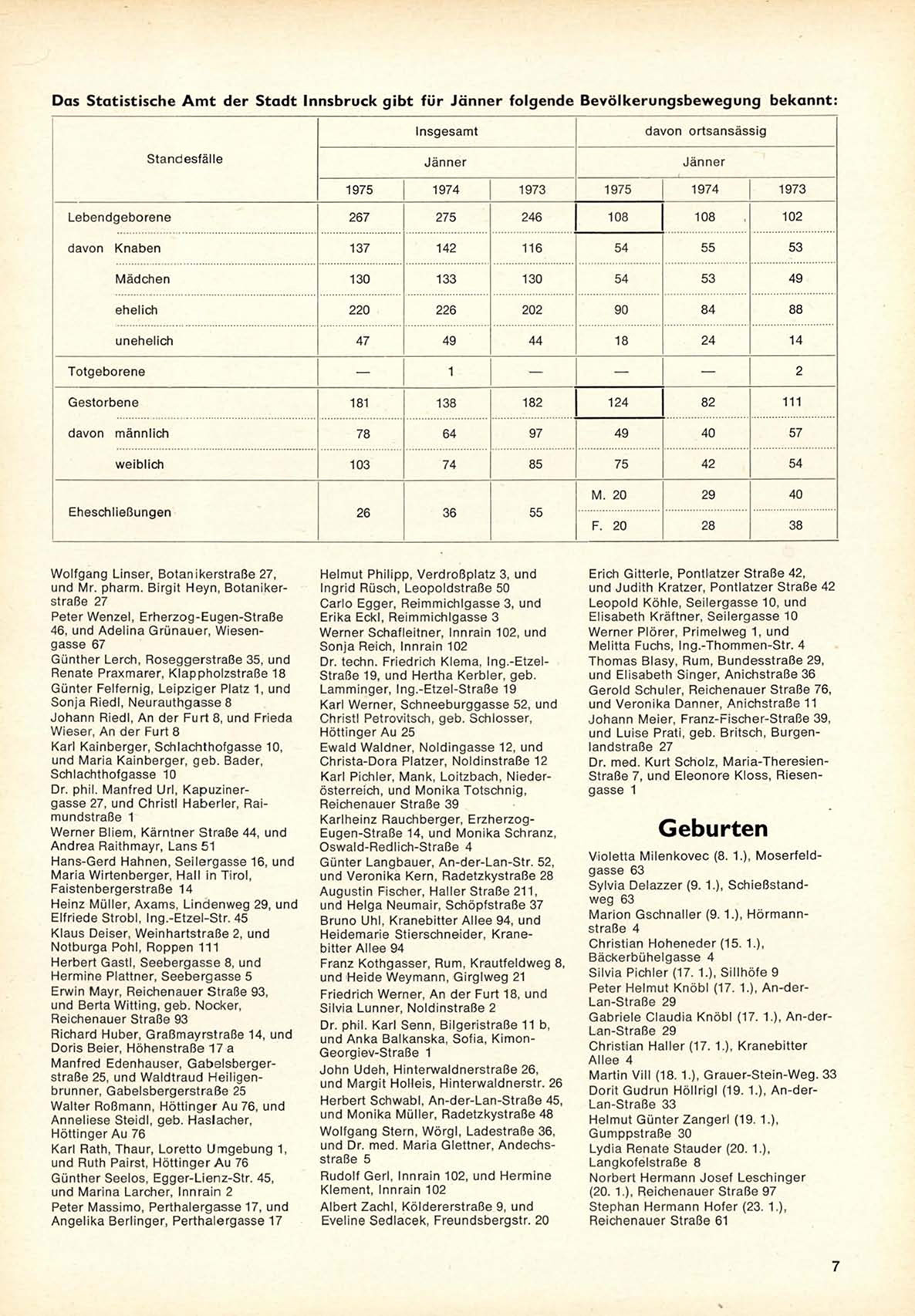 Das Statistische Amt der Stadt Innsbruck gibt für Jänner folgende Bevölkerungsbewegung