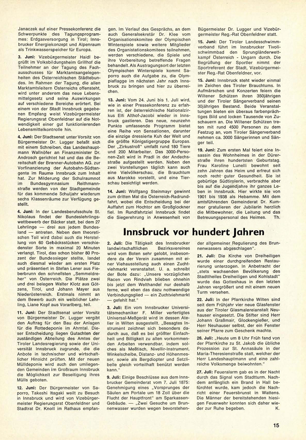 9. Juli: Einige Beschlüsse aus d e m Innsbrucker G e m e i n d e r a t vom 7. J u l i 1875: