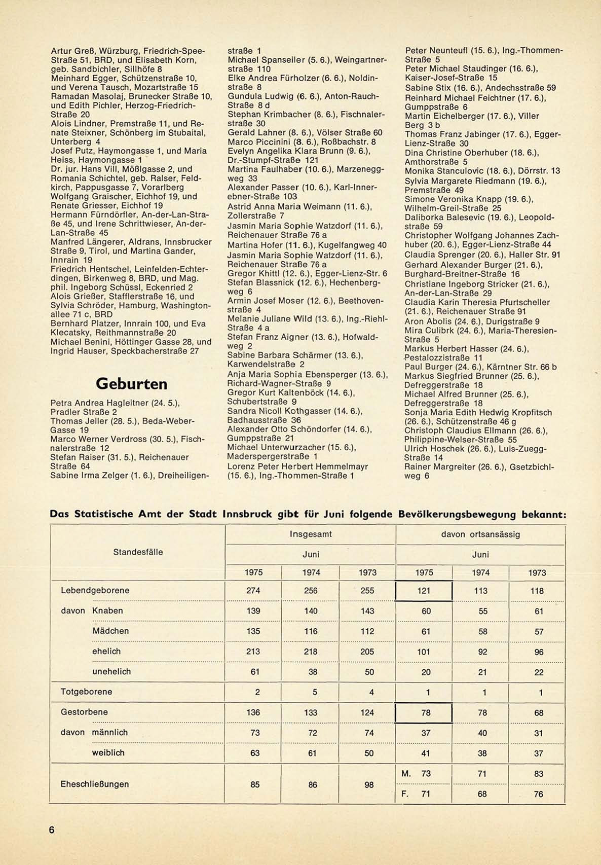 Das Statistische A m t der Stadt Innsbruck gibt für Juni folgende Bevölkerungsbewegung