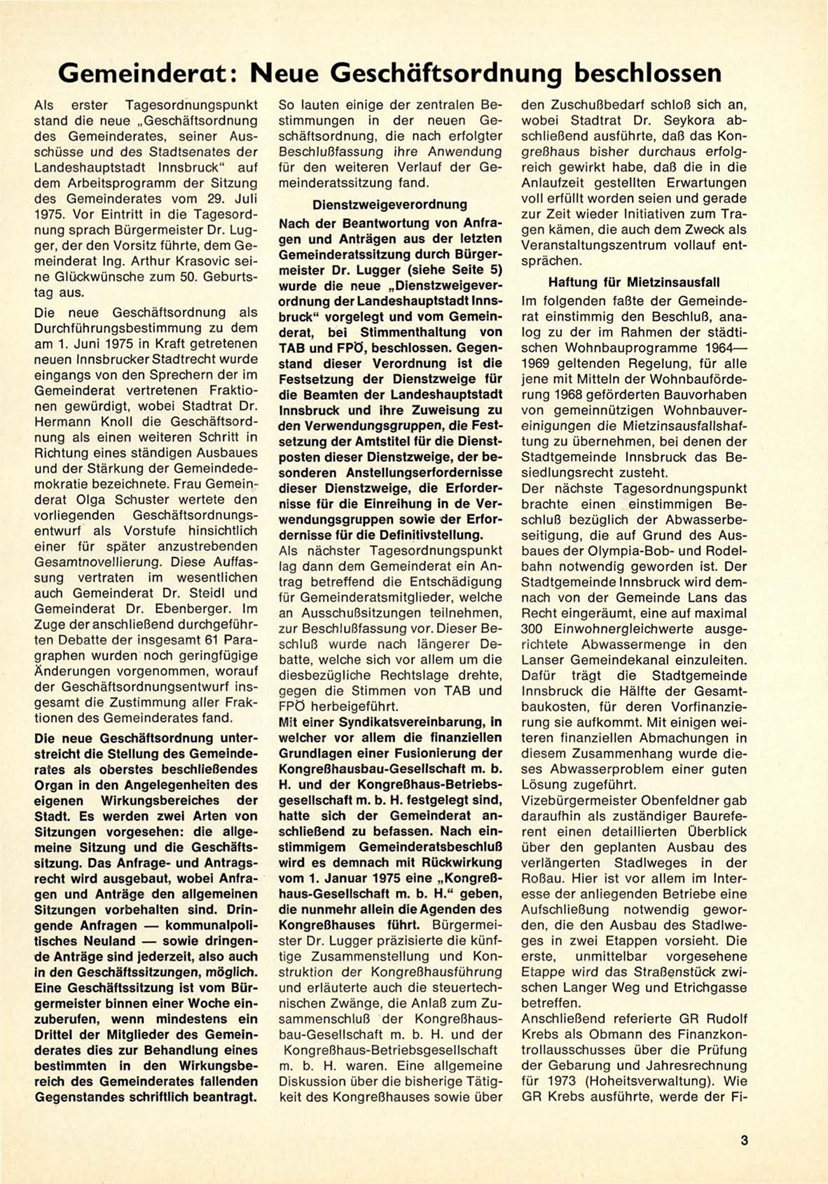 1975. Vor Eintritt in die Tagesordnung sprach Bürgermeister Dr. Lugger, der den Vorsitz führte, dem Gemeinderat Ing. Arthur Krasovic seine Glückwünsche zum 50. Geburtstag aus.