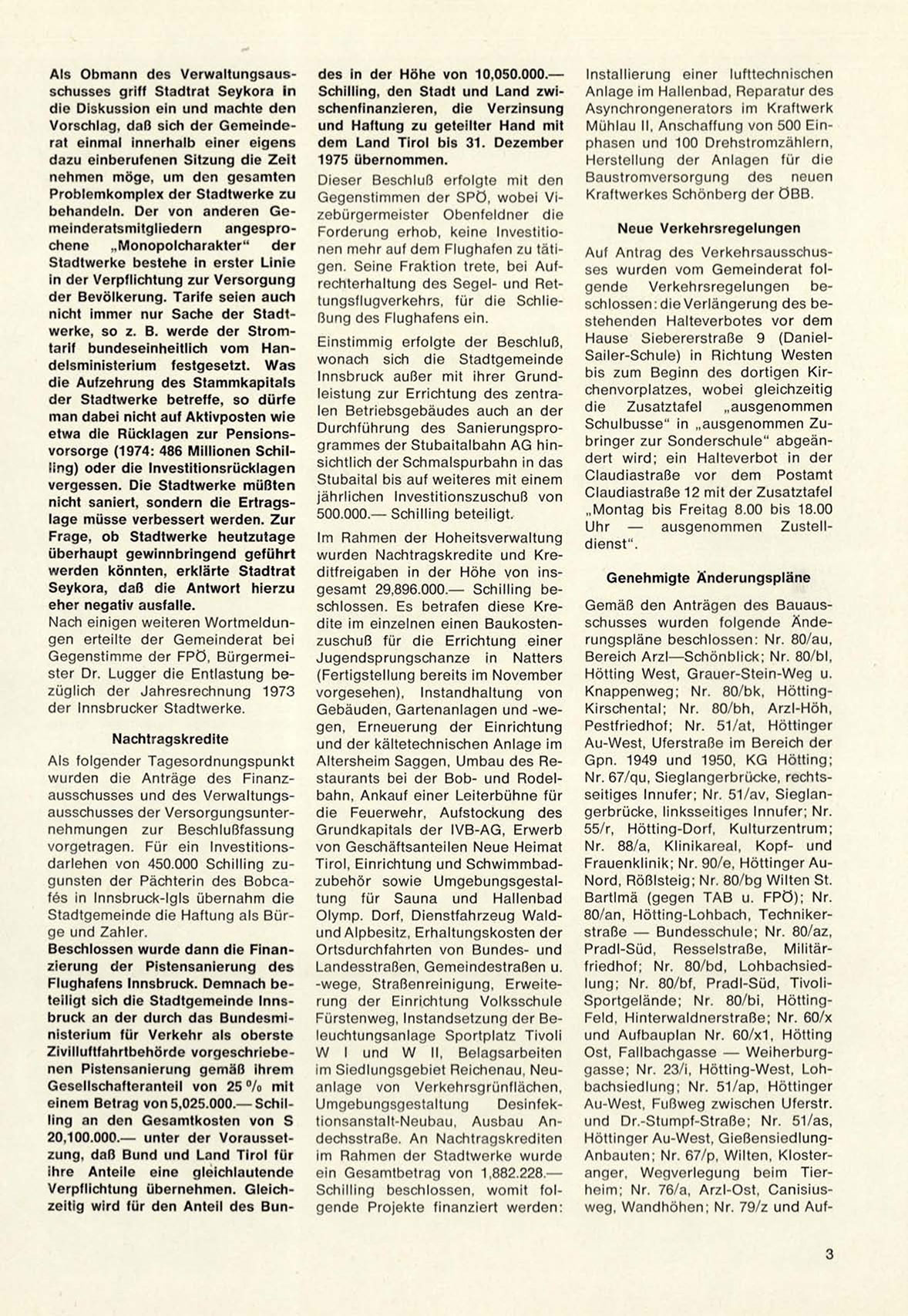 Höttinger Au-West, GießensiedlungAnbauten; Nr. 67/p, Wilten, Klosteranger, Wegverlegung beim Tierheim; Nr. 76/a, Arzl-Ost, Canisiusweg, Wandhöhen; Nr. 79/z und Auf3