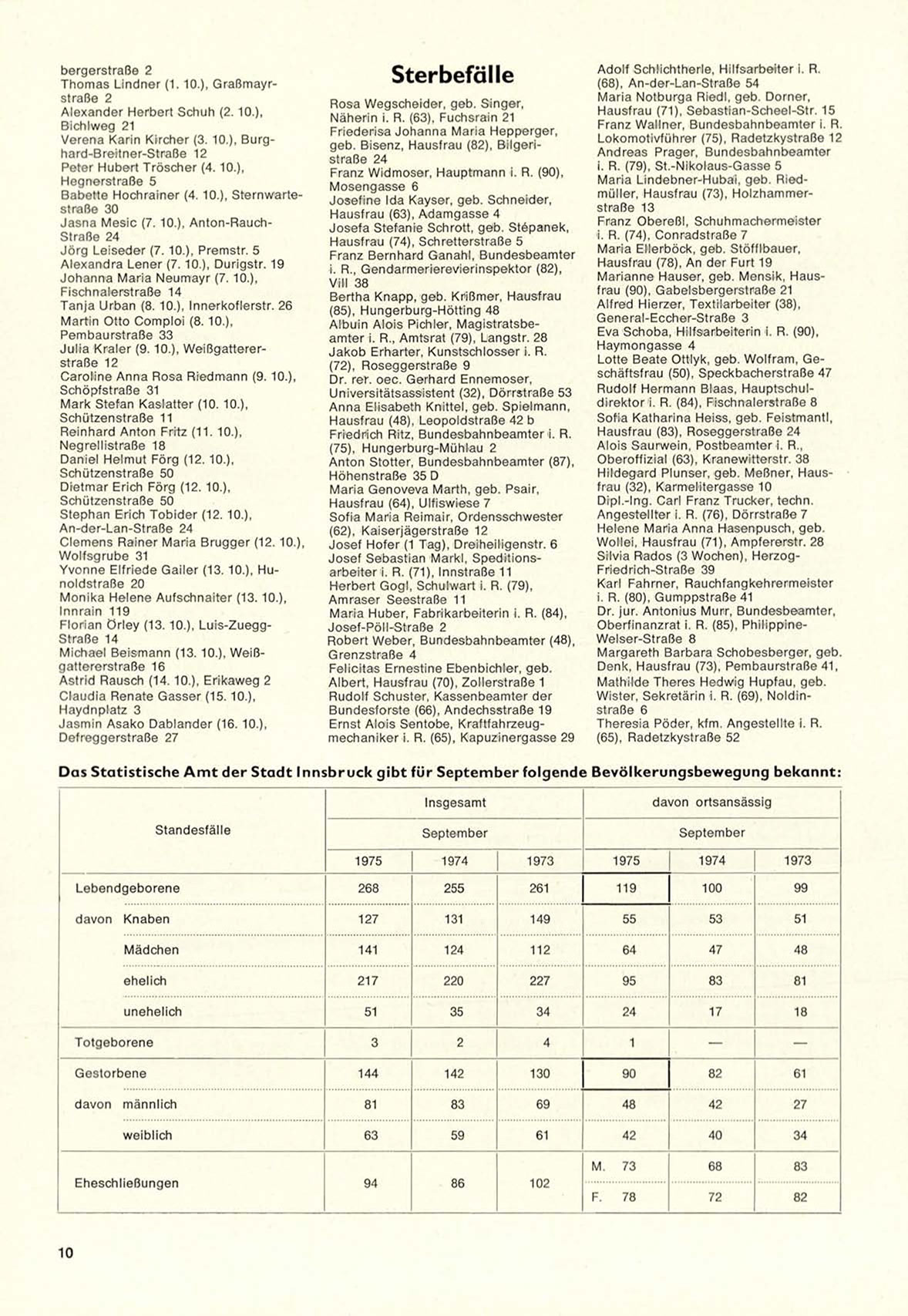 Das Statistische Amt der Stadt Innsbruck gibt für September folgende Bevölkerungsbewegung bekannt: