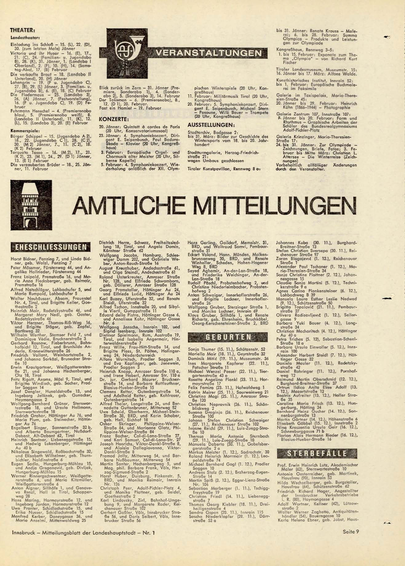 27. (B), 29. (L) Jänner, 3. (Fcmilien- u.