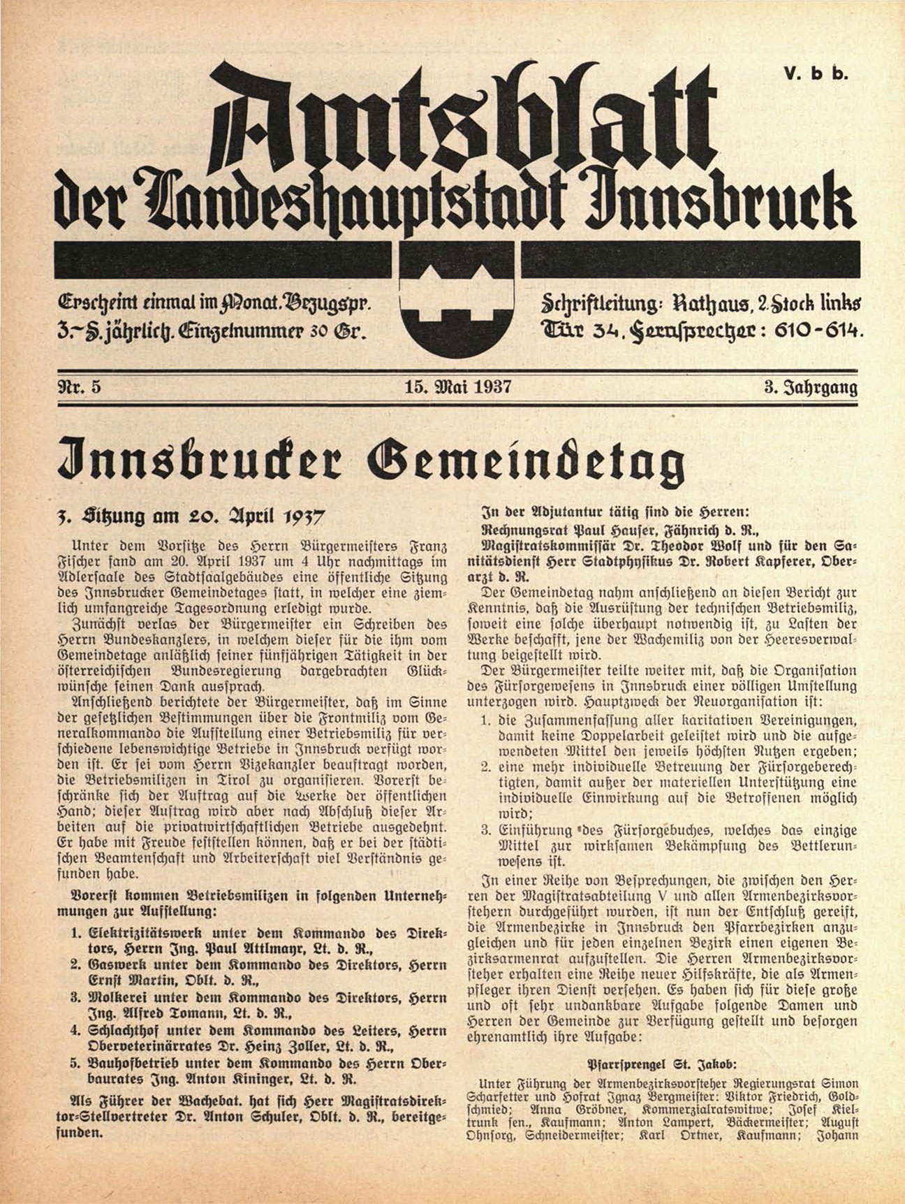 des Innsbrucker Gemeindetages statt, in welcher eine ziemlich umfangreiche Tagesordnung erledigt wurde.