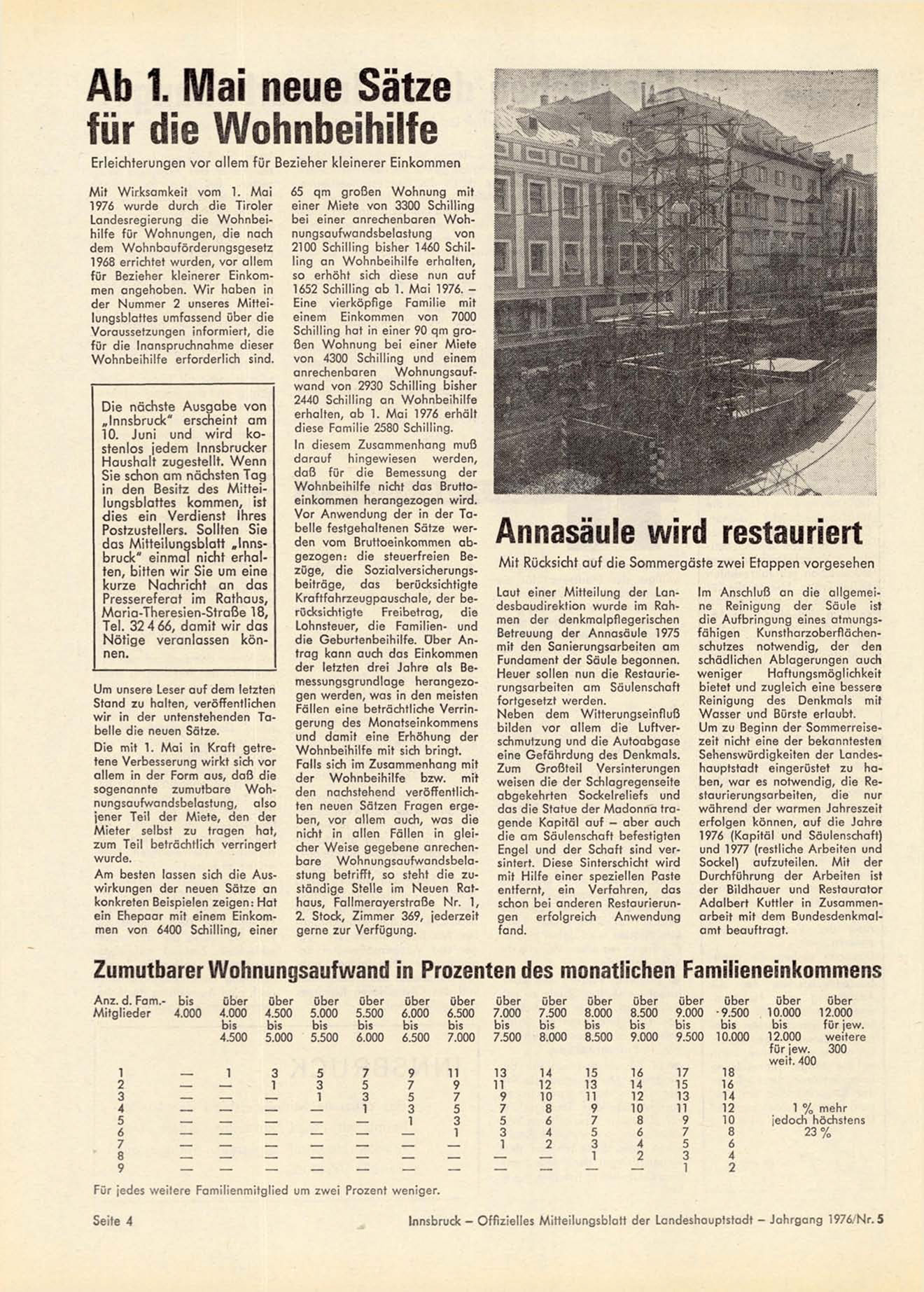 Innsbruck - Offizielles Mitteilungsblatt der Lendeshauptstadt - Jahrgang 1976. Nr. 5