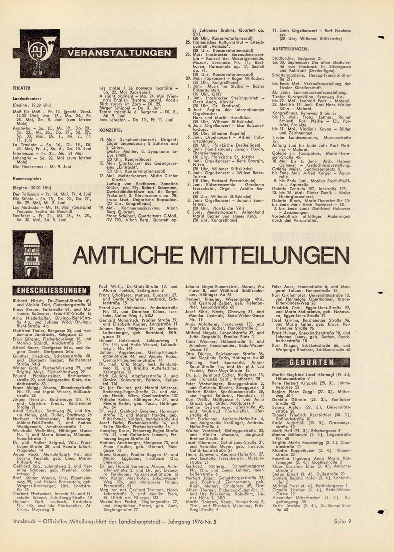 Innsbruck - Offizielles Mitteilungsblatt der Landeshauptstadt - Jahrgang 1976/Nr. 5