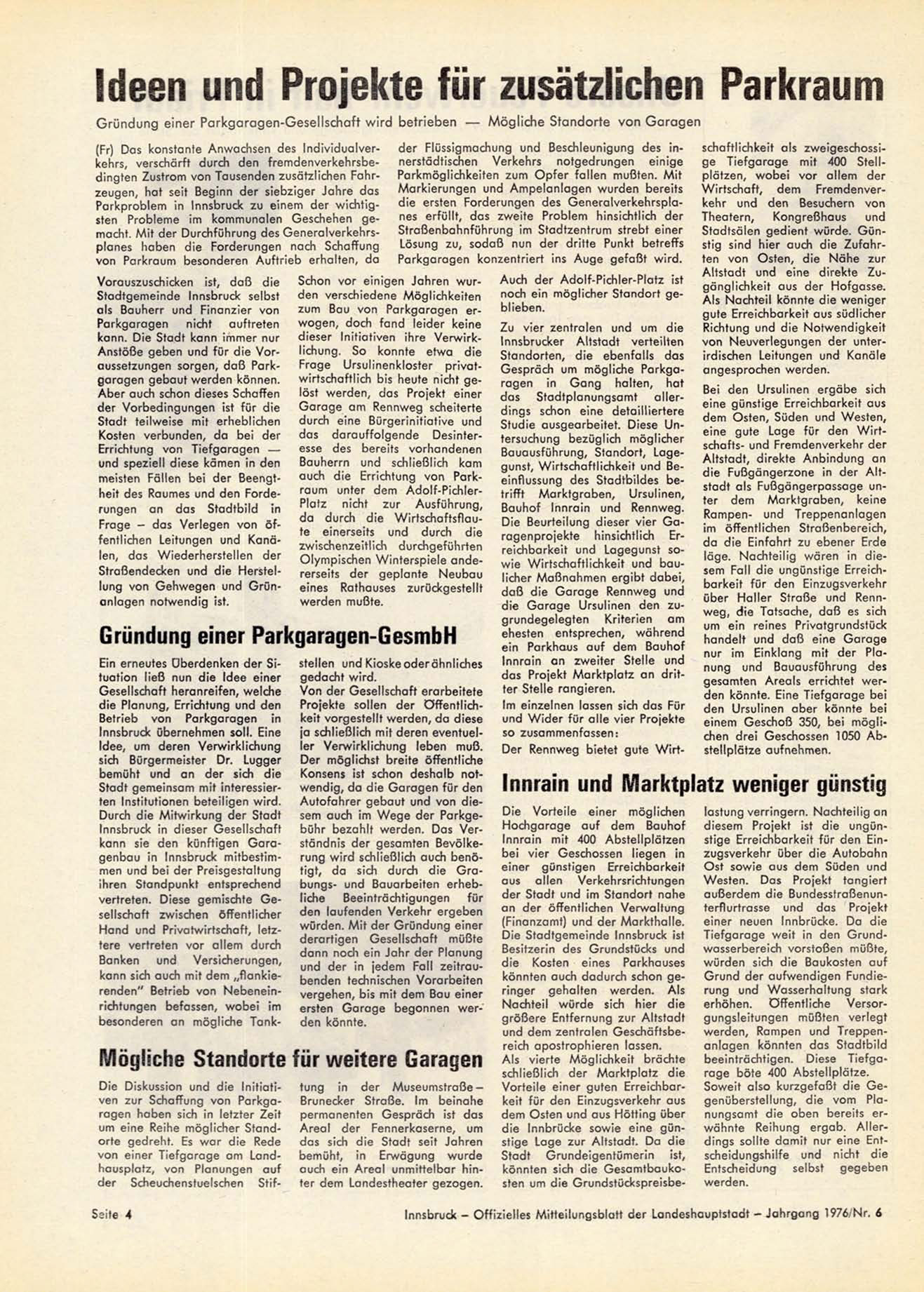 Innsbruck - Offizielles Mitteilungsblatt der Landeshauptstadt - Jahrgang 1976/Nr. 6