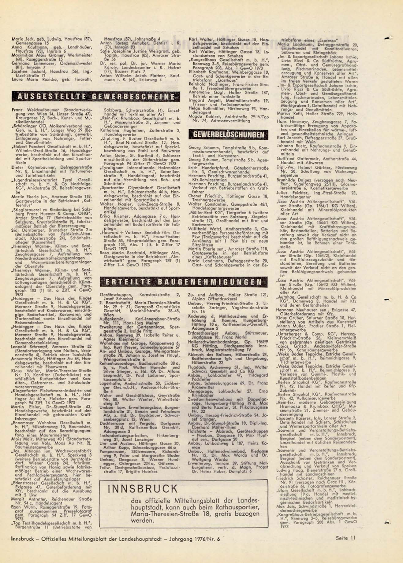 Innsbruck - Offizielles Mitteilungsblatt der Landeshauptstadt - Jahrgang 1976/Nr. 6