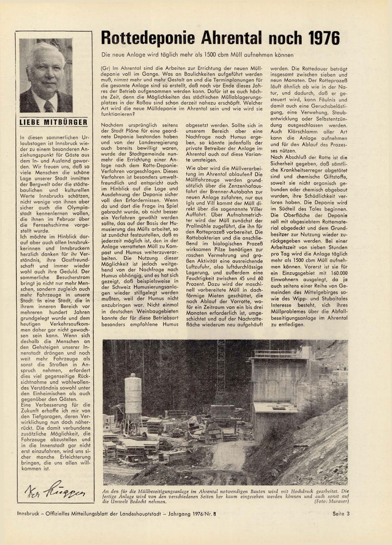 Innsbruck - Offizielles Mitteilungsblatt der Landeshauptstadt - Jahrgang 1976"Nr. 8