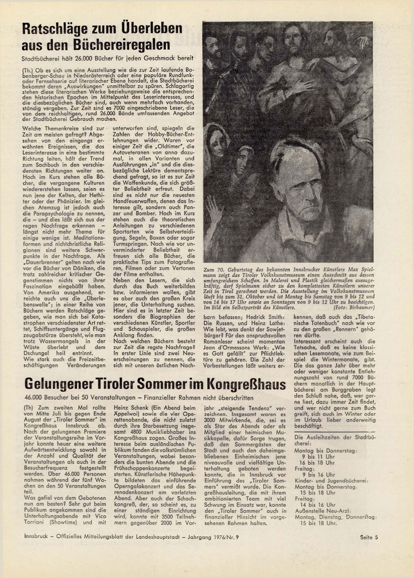 Innsbruck - O f f i z i e l l e s M i t t e i l u n g s b l a t t d e r L a n d e s h a u p t s t a d t - J a h r g a n g 1976/Nr. 9