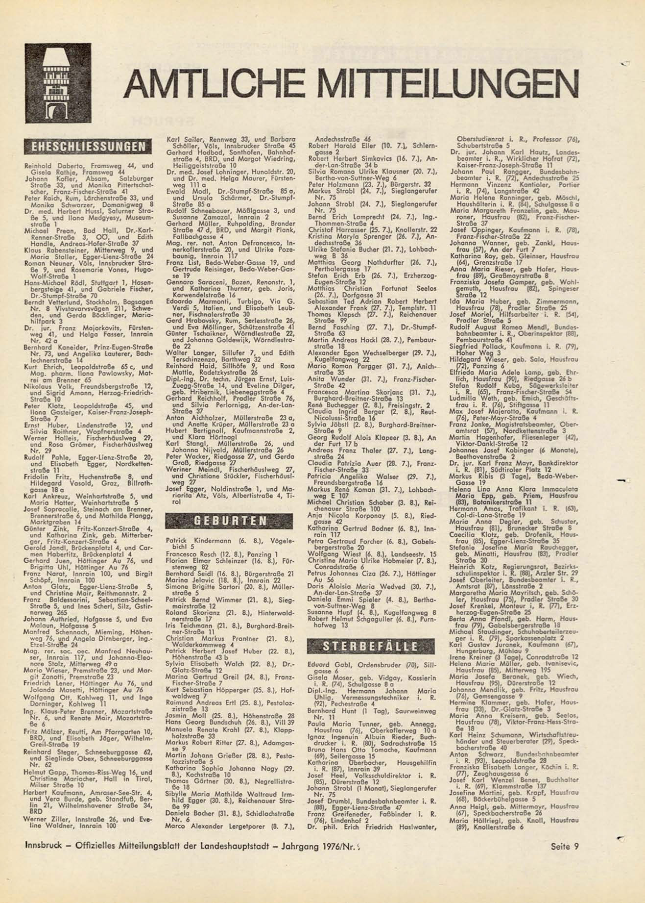 Innsbruck - Offizielles Mitteilungsblatt der Landeshauptstadt - Jahrgang 1976/Nr.