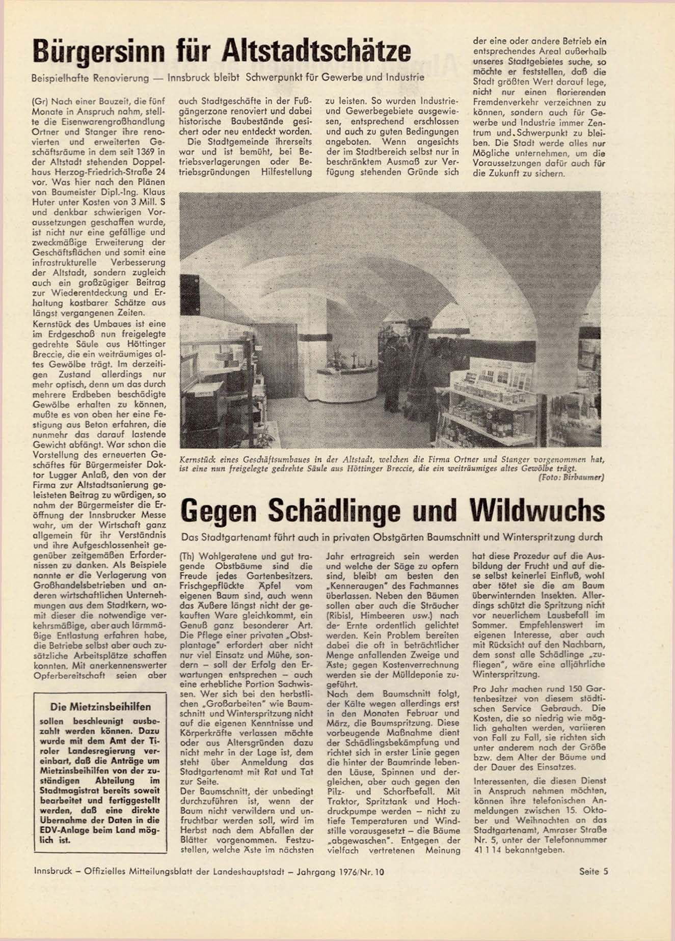 Innsbruck - Offizielles Mitteilungsblatt der Landeshauptstadt - Jahrgang 1976/Nr. 10