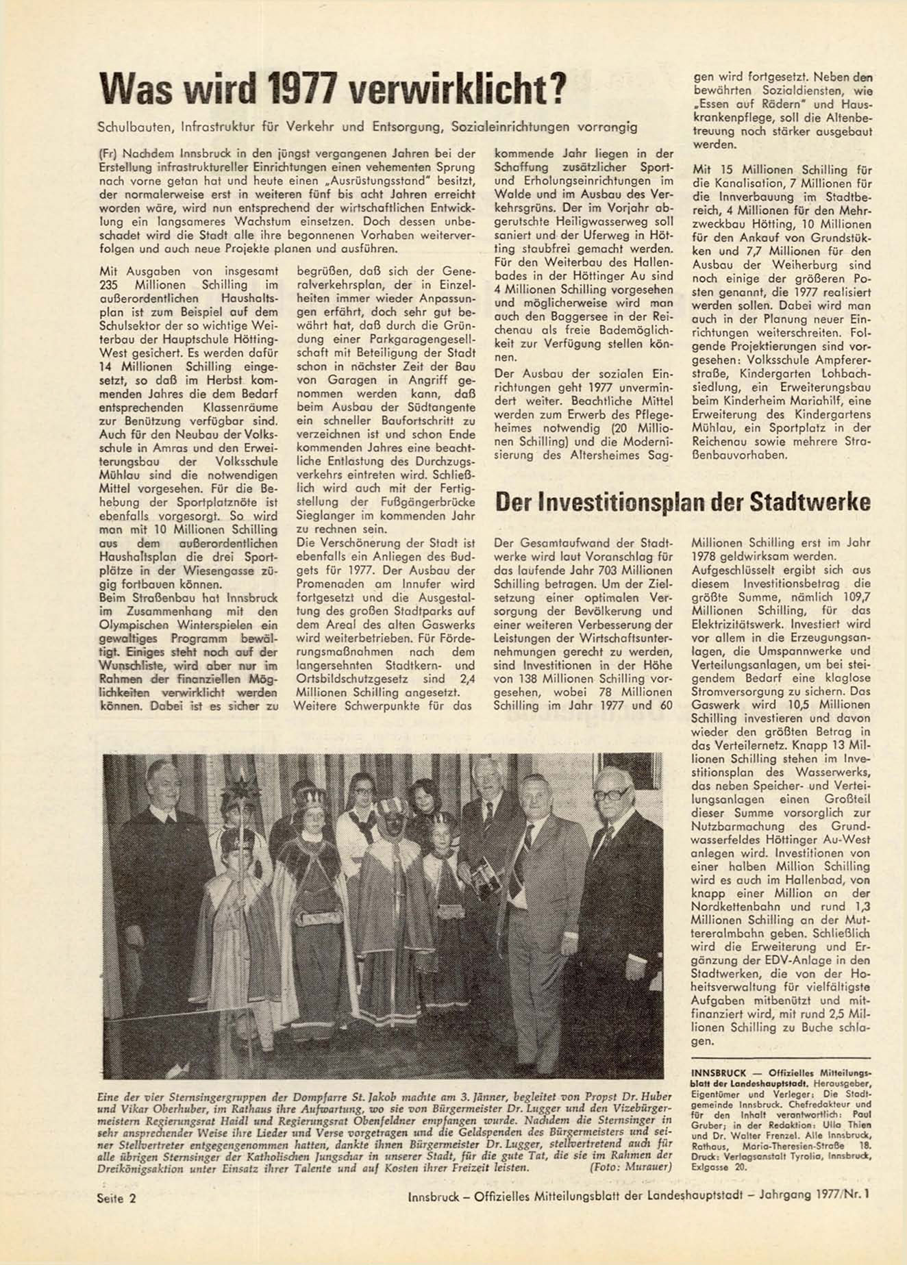 Innsbruck - Offizielles Mitteilungsblatt der Landeshauptstadt - Jahrgang 1977 Nr. 1