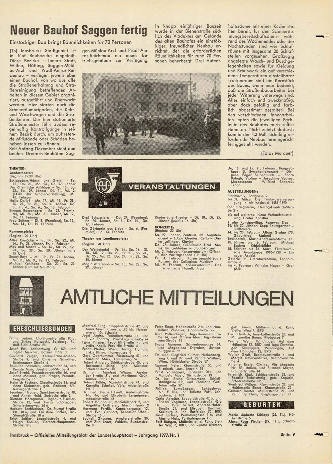 Innsbruck - Offizielles Mitteilungsblatt der Landeshauptstadt - Jahrgang 1977/Nr. 1