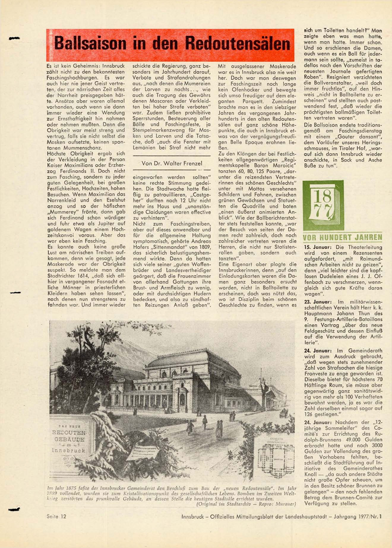 Innsbruck - O f f i z i e l l e s M i t t e i l u n g s b l a t t d e r L a n d e s h a u p t s t a d t - J a h r g a n g 1977 N r . 1