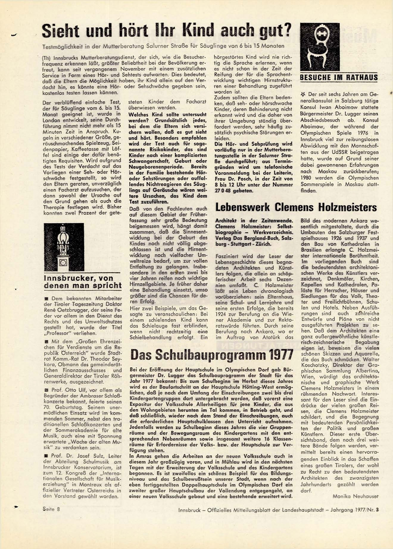 Innsbruck - O f f i z i e l l e s M i t t e i l u n g s b l a t t der L a n d e s h a u p t s t a d t - J a h r g a n g 1977. N r . %