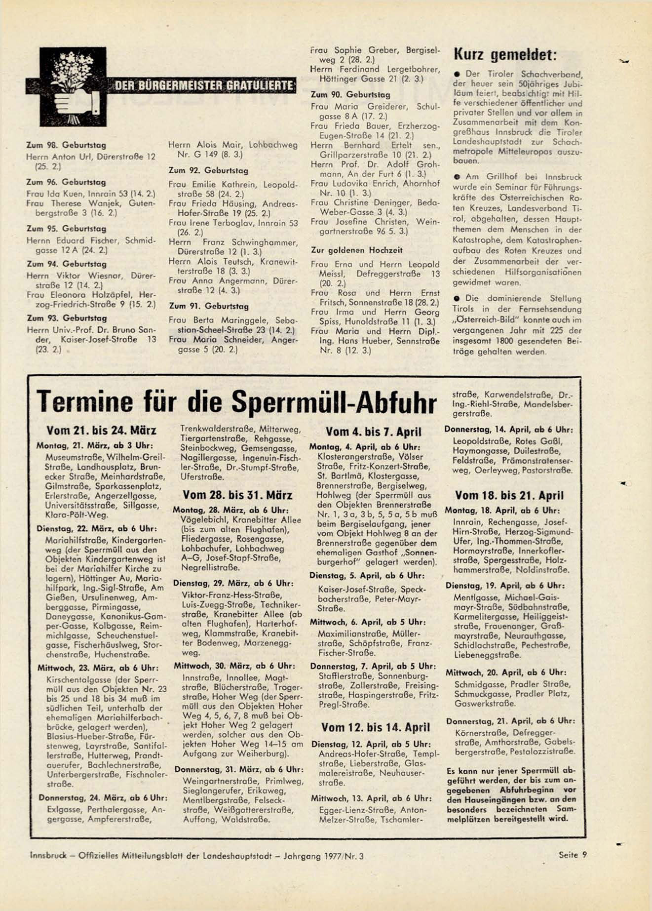 Innsbruck - O f f i z i e l l e s M i t t e i l u n g s b l a t t der L a n d e s h a u p t s t a d t - J a h r g a n g 1977 N r . 3