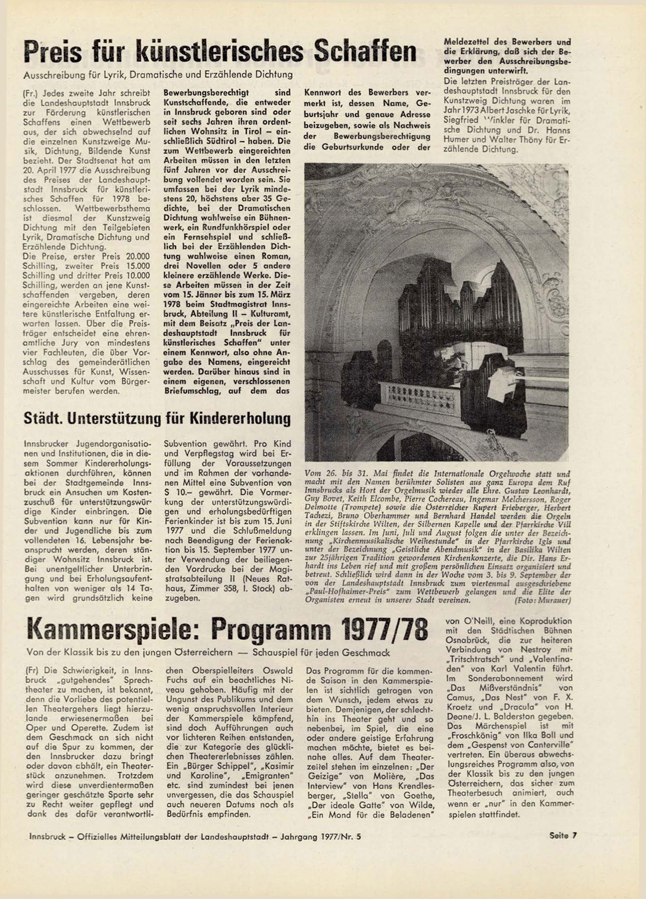Innsbruck - O f f i z i e l l e s M i t t e i l u n g s b l a t t d e r L a n d e s h a u p t s t a d t - J a h r g a n g 1977/Nr. 5