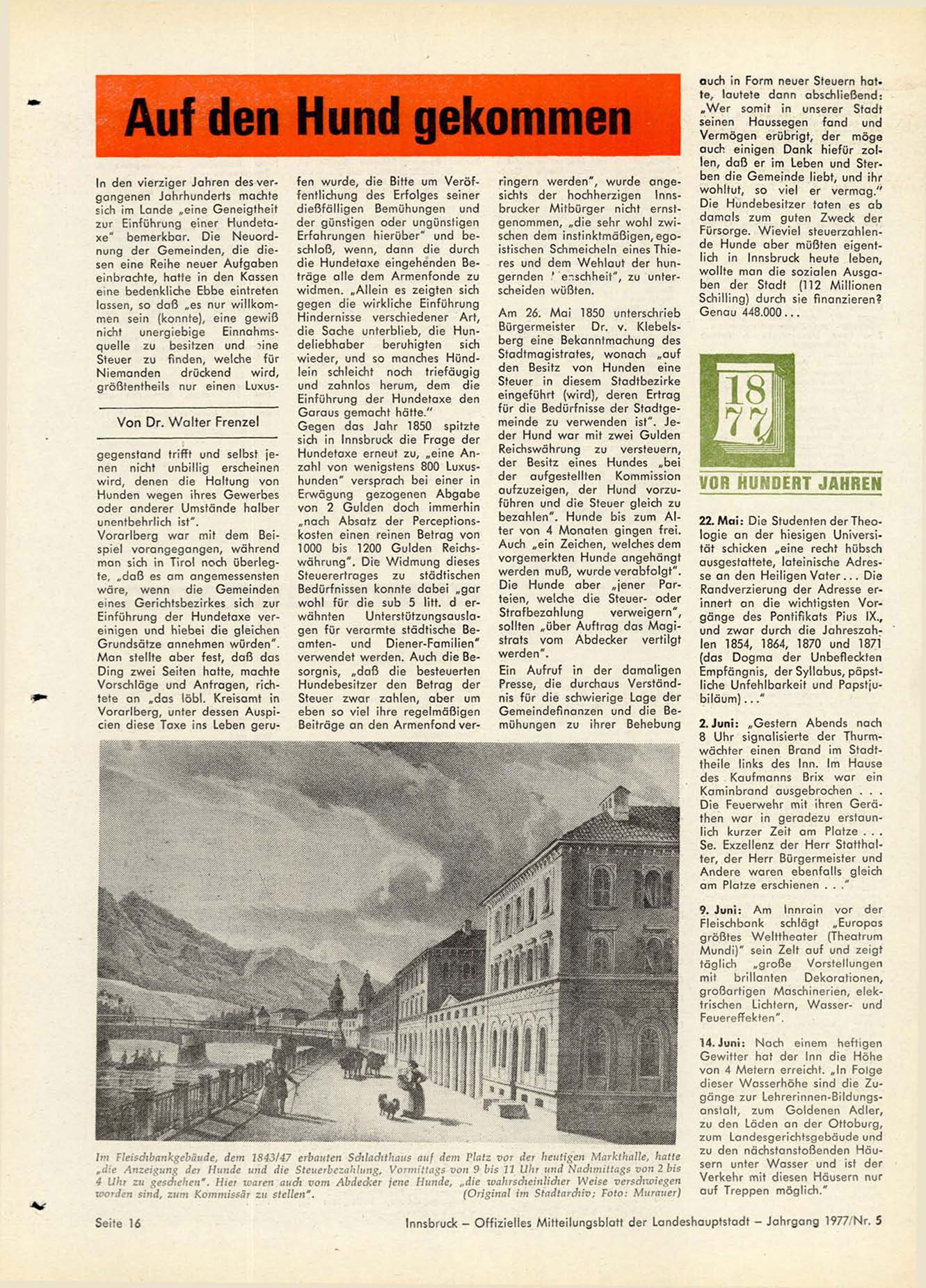 Fürsorge. W i e v i e l s t e u e r z a h l e n d e H u n d e a b e r müßten eigentlich in Innsbruck heute l e b e n ,