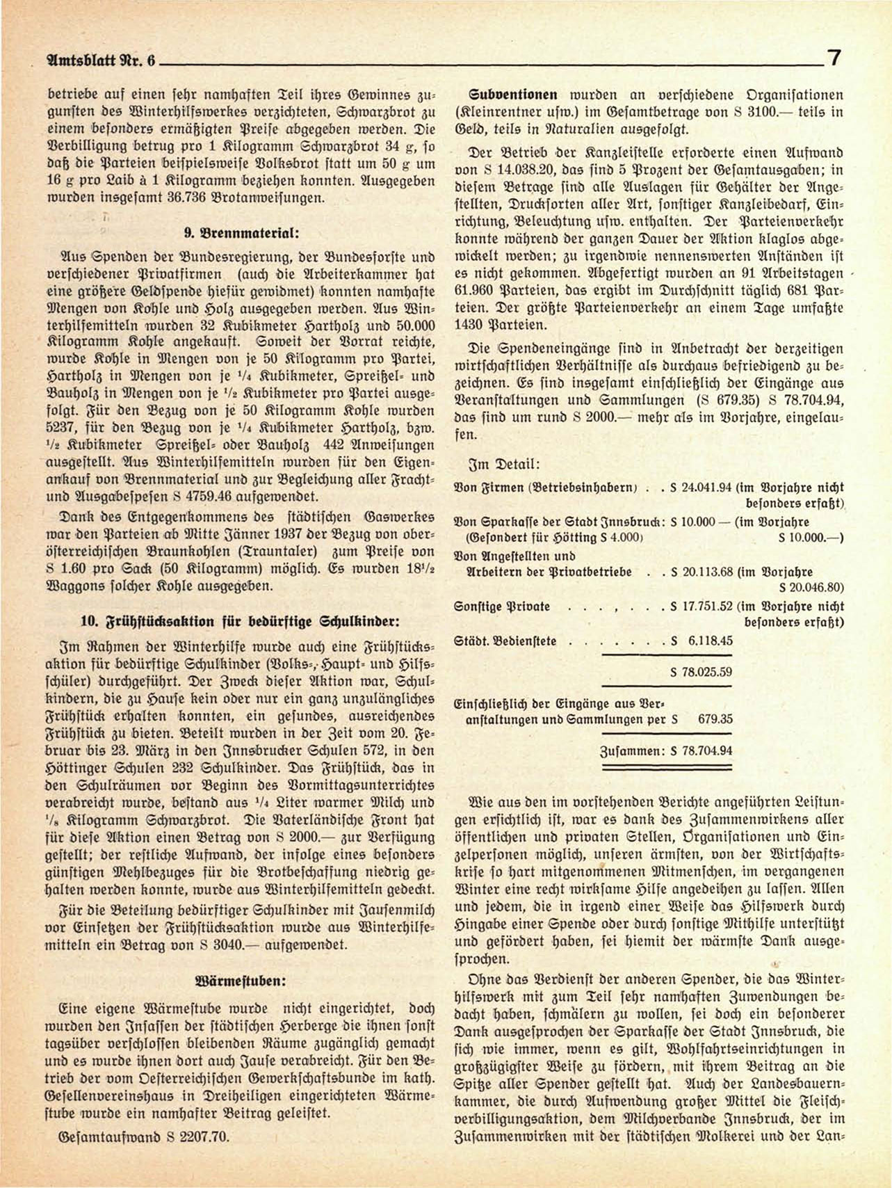 ausgestellt. Aus Winterhilfemitteln wurden für den Eigenattkauf von Brennmaterial und zur Begleichung aller Frachtuno Ausgabespesen 8 4759.46 aufgewendet.