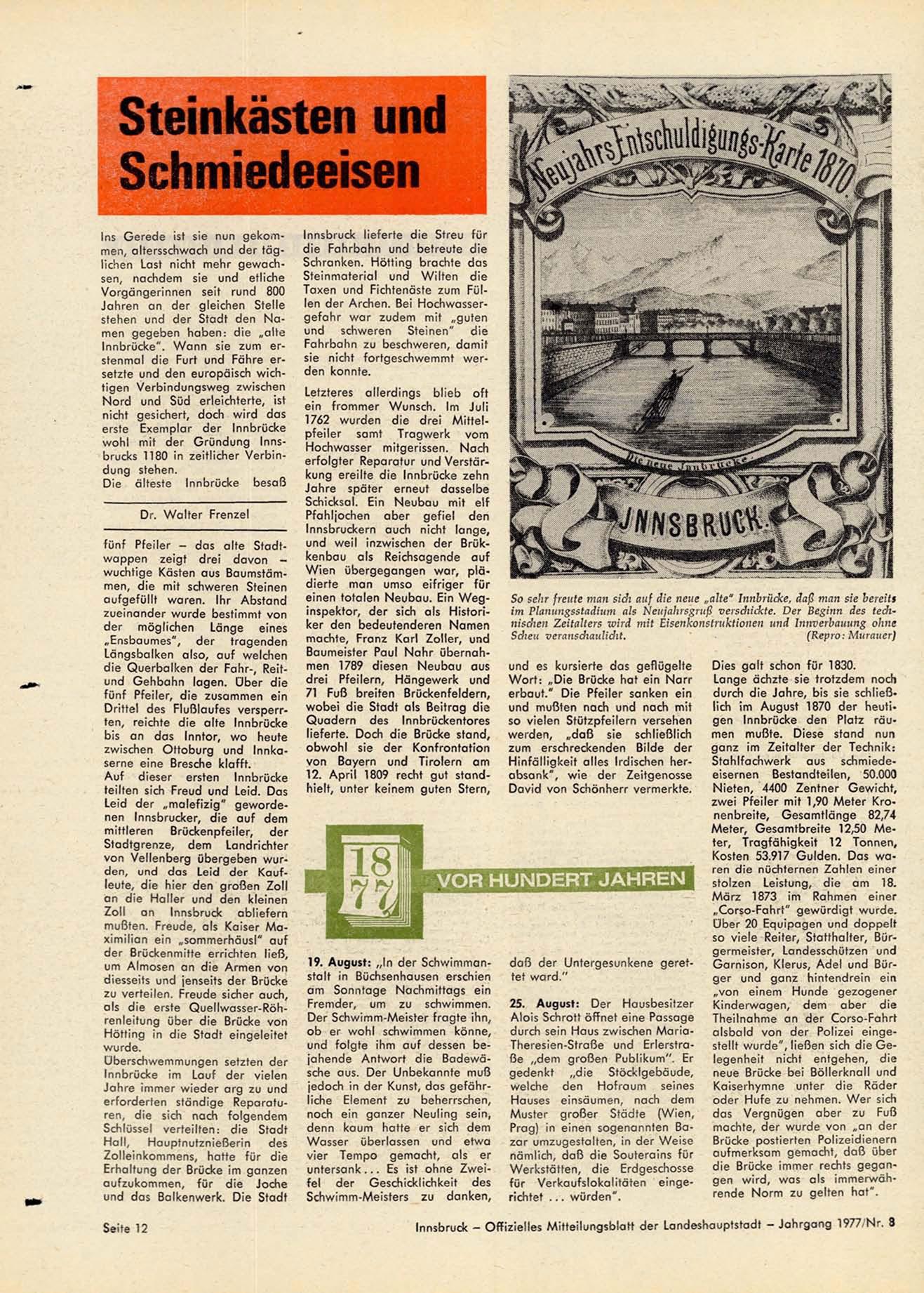Innsbruck - O f f i z i e l l e s M i t t e i l u n g s b l a t t d e r L a n d e s h a u p t s t a d t - J a h r g a n g 1977/Nr. 8