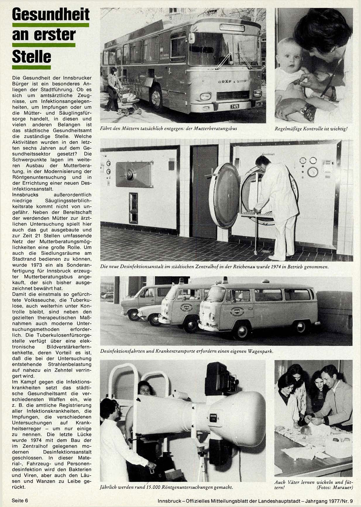 wurde 1973 ein als Sonderanfertigung für Innsbruck erzeugter Mutterberatungsbus angekauft, der sich bisher ausgezeichnet bewährt hat.