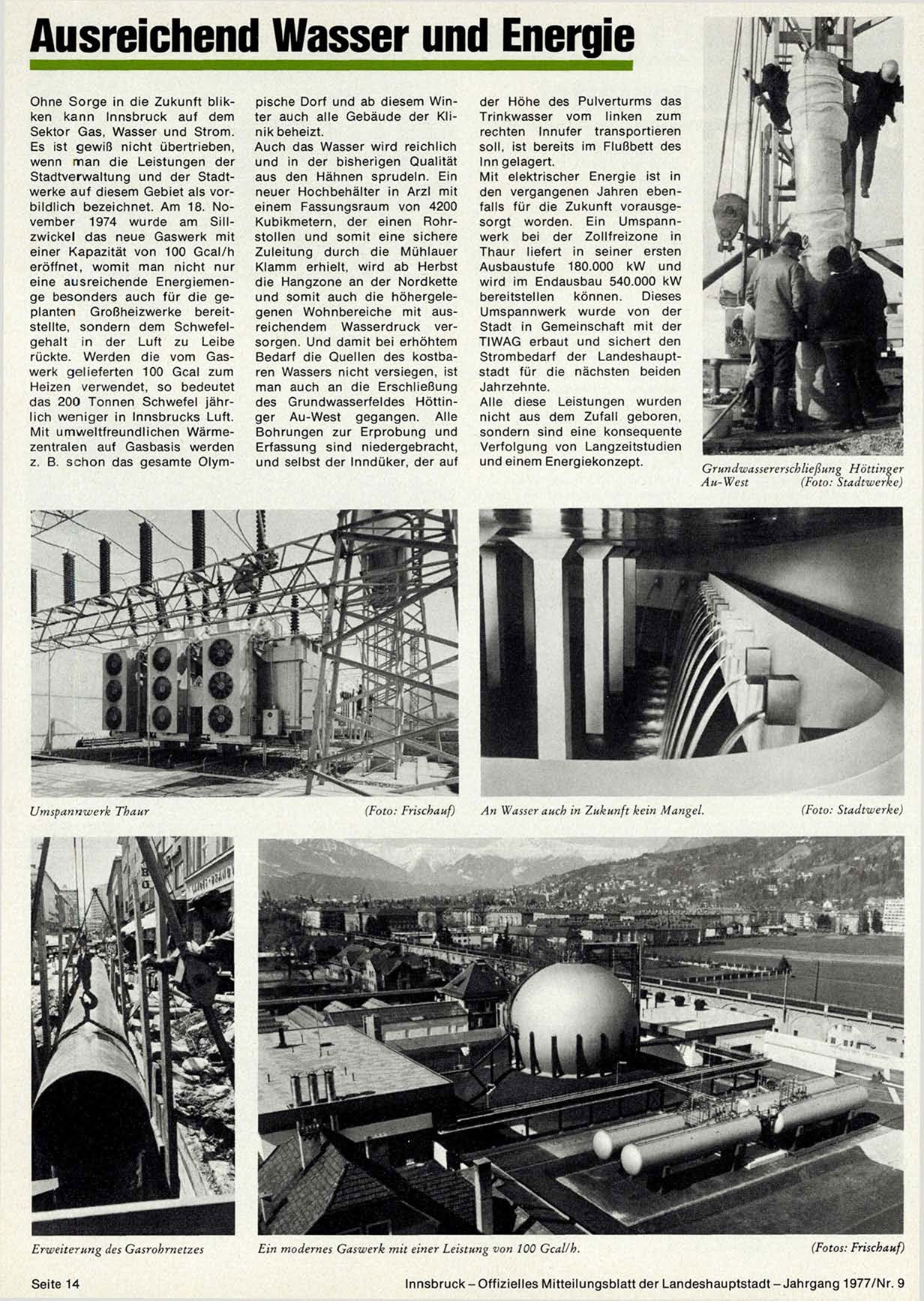 Stadtverwaltung und der Stadtwerke auf diesem Gebiet als vorbildlich bezeichnet. Am 18. November 1974 wurde am Sillzwickel das neue Gaswerk mit