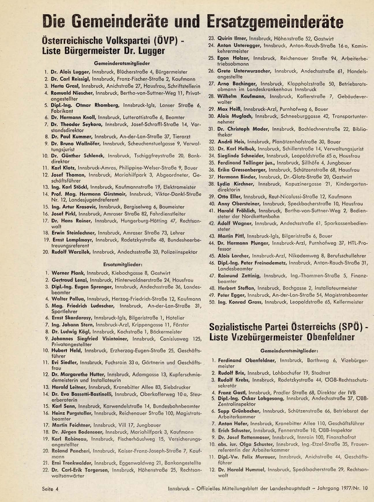 Innsbruck - Offizielles Mitteilungsblatt der Landeshauptstadt - Jahrgang 1977/Nr. 10