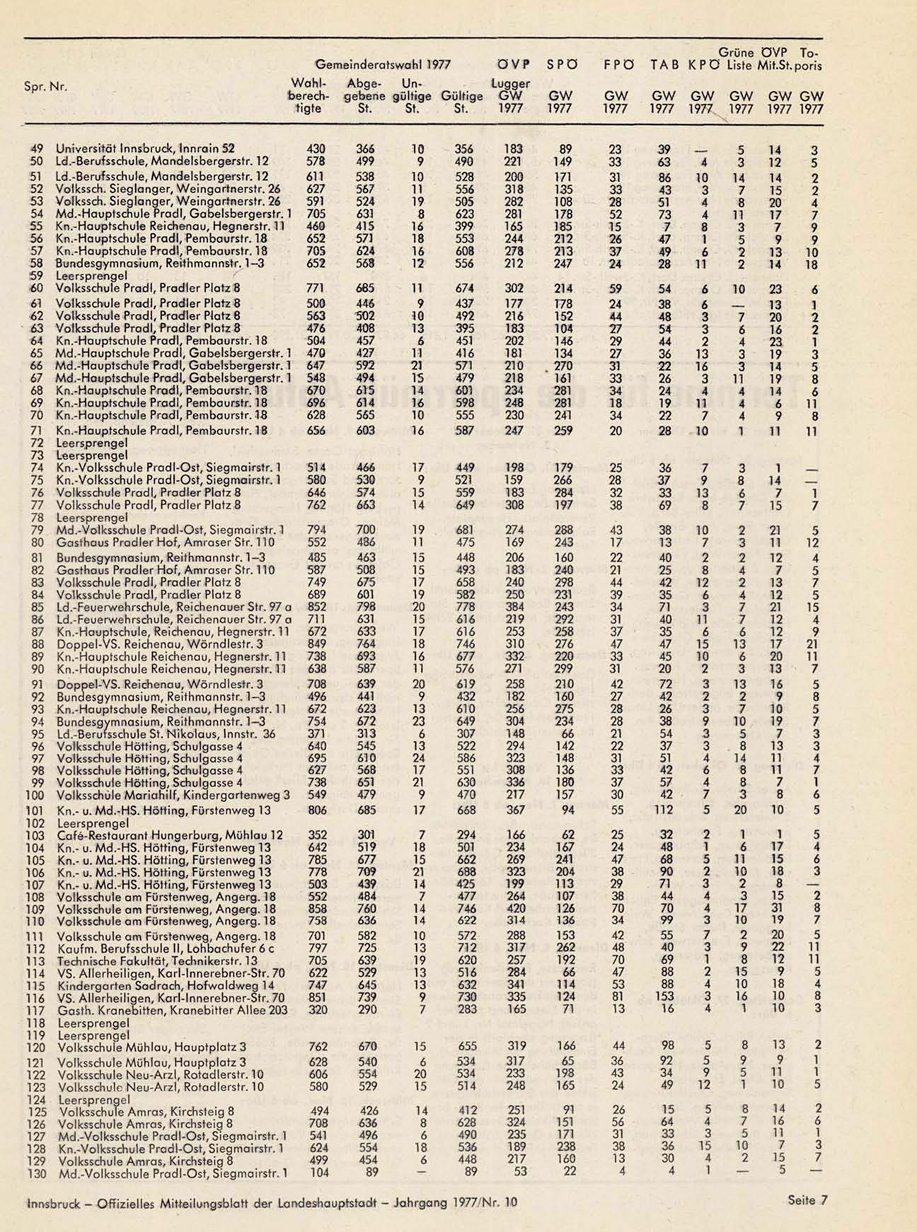 Innsbruck - Offizielles Mitteilungsblatt der Landeshauptstadt - Jahrgang 1977/Nr. 10