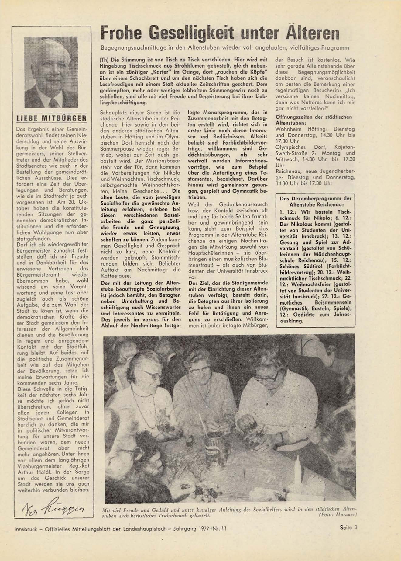 12.: W e i h n a c h t s f e i e r (gestaltet v o n Studenten der U n i v e r sität Innsbruck); 27. 12.: G e mütliches