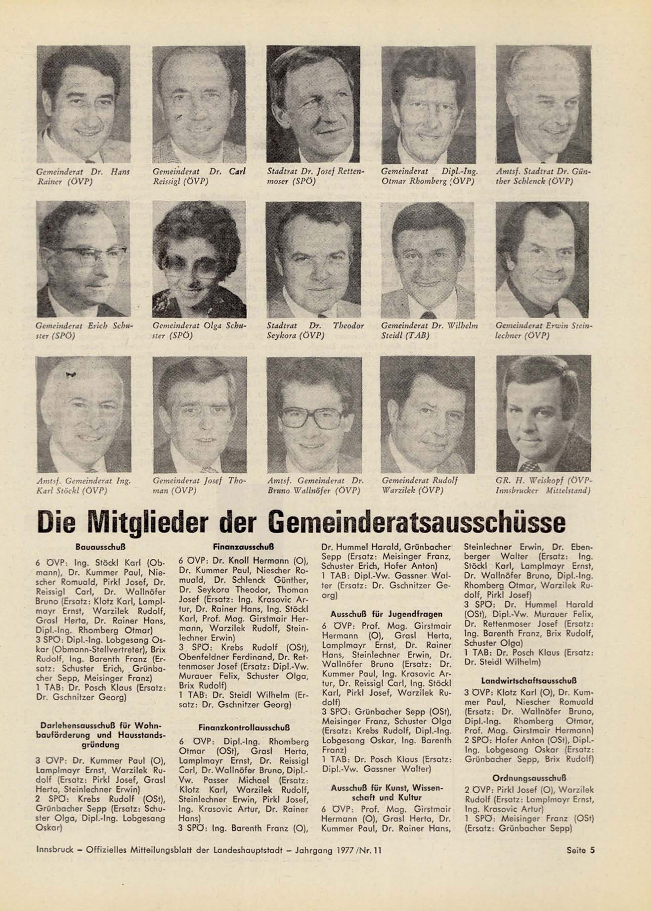 6 ÖVP-. Ing. Stöckl K a r l ( O b mann), Dr. K u m m e r P a u l , N i e scher R o m u a l d , Pirkl Josef, Dr.
