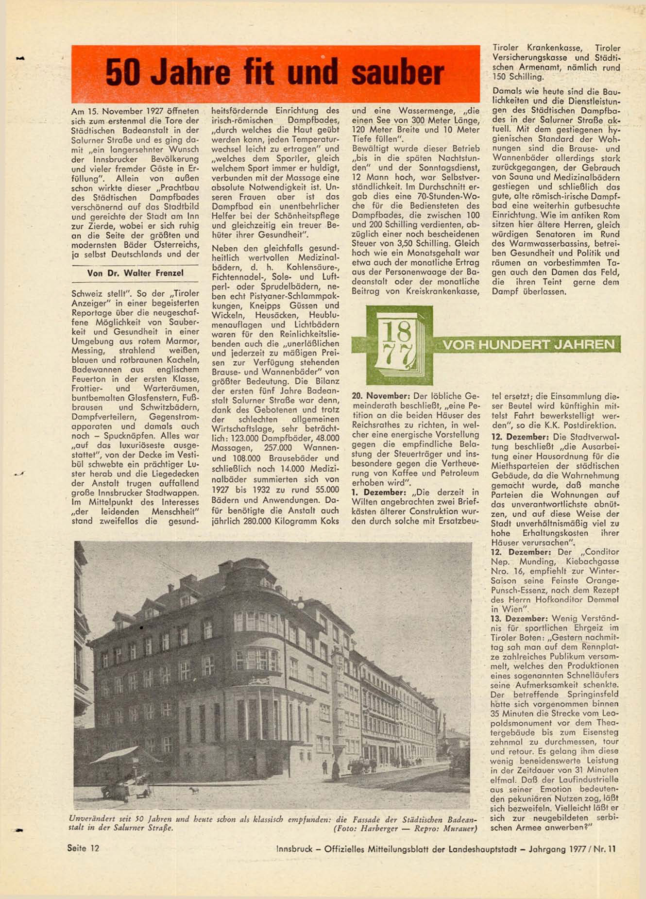 Innsbruck - O f f i z i e l l e s M i t t e i l u n g s b l a t t der L a n d e s h a u p t s t a d t - J a h r g a n g 1 9 7 7 / N r . 11