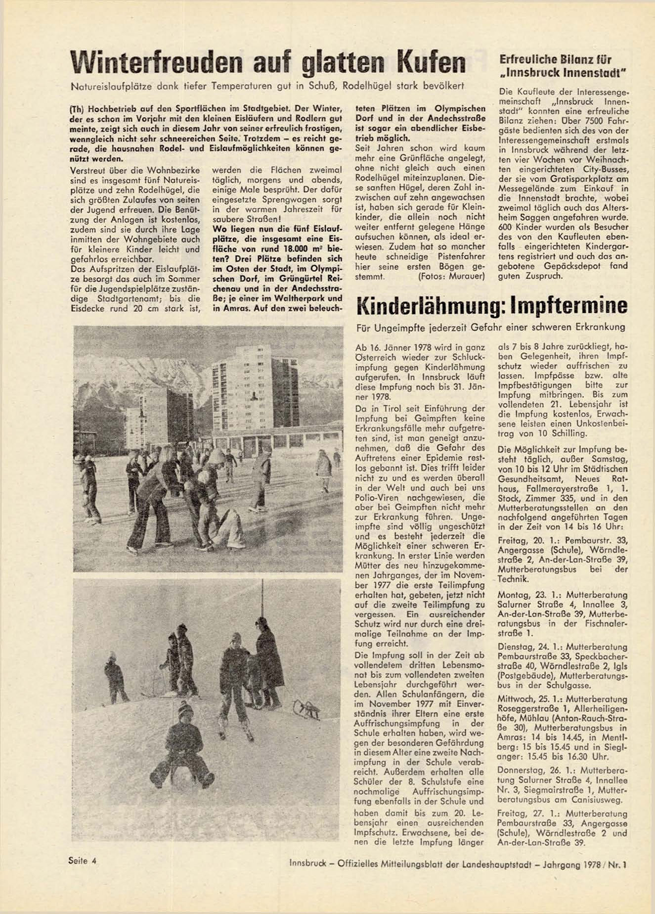 Innsbruck - O f f i z i e l l e s M i t t e i l u n g s b l a t t der L a n d e s h a u p t s t a d t - J a h r g a n g 1978. N r . 1