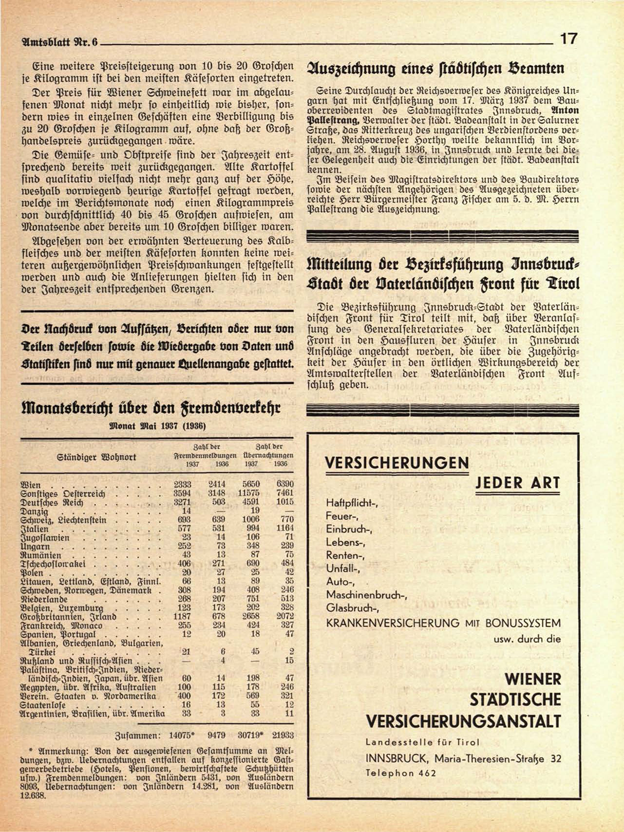 Seine Durchlaucht der Reichsverweser des Königreiches Ungarn hat mit Entschließung vom 17. März 1937 dem Bauoberrevidenten des Stadtmagistrates Innsbruck, Anton