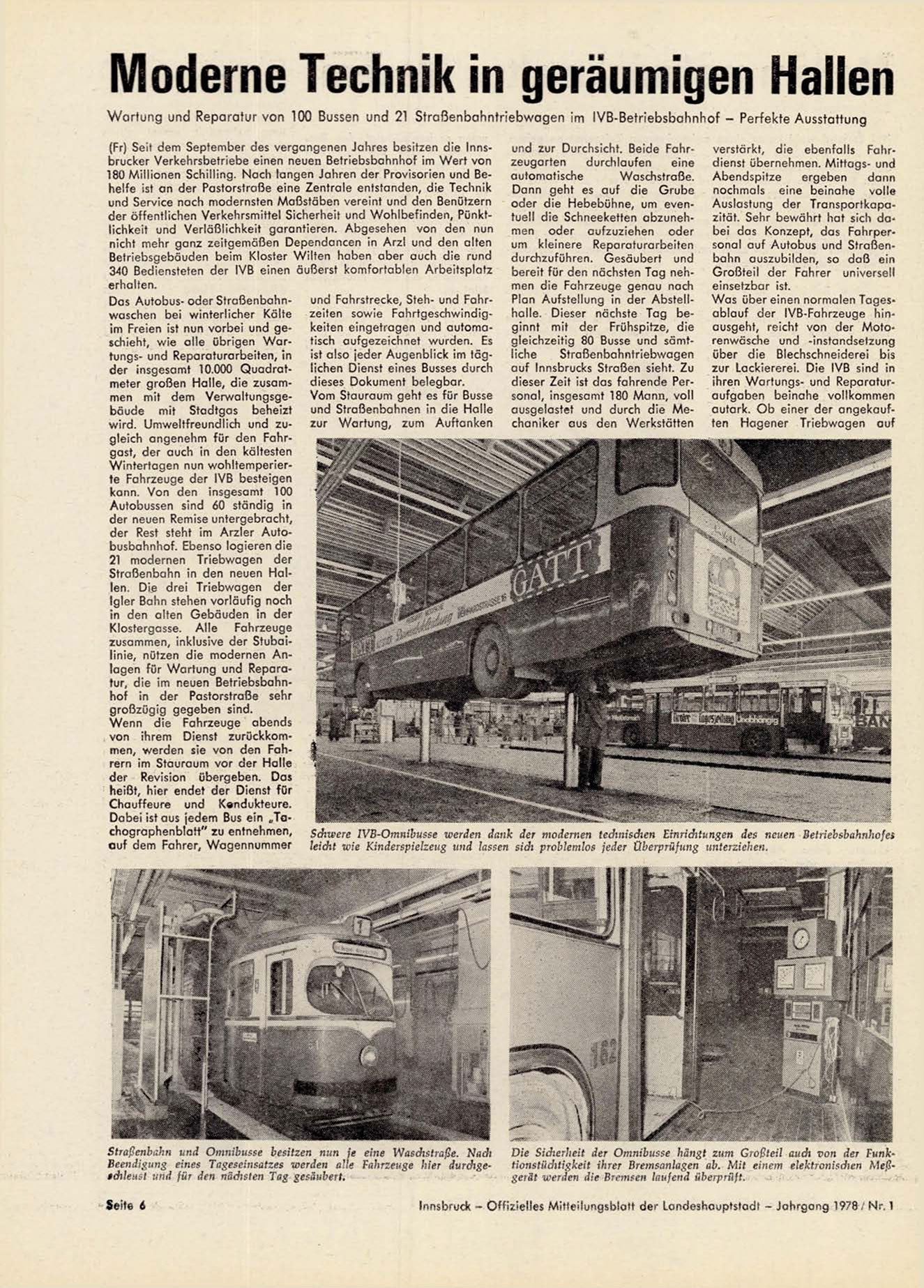 W a r t u n g und Reparatur von 100 Bussen und 21 S t r a ß e n b a h n t r i e b w a g e n im IVB-Betriebsbahnhof - Perfekte Ausstattung