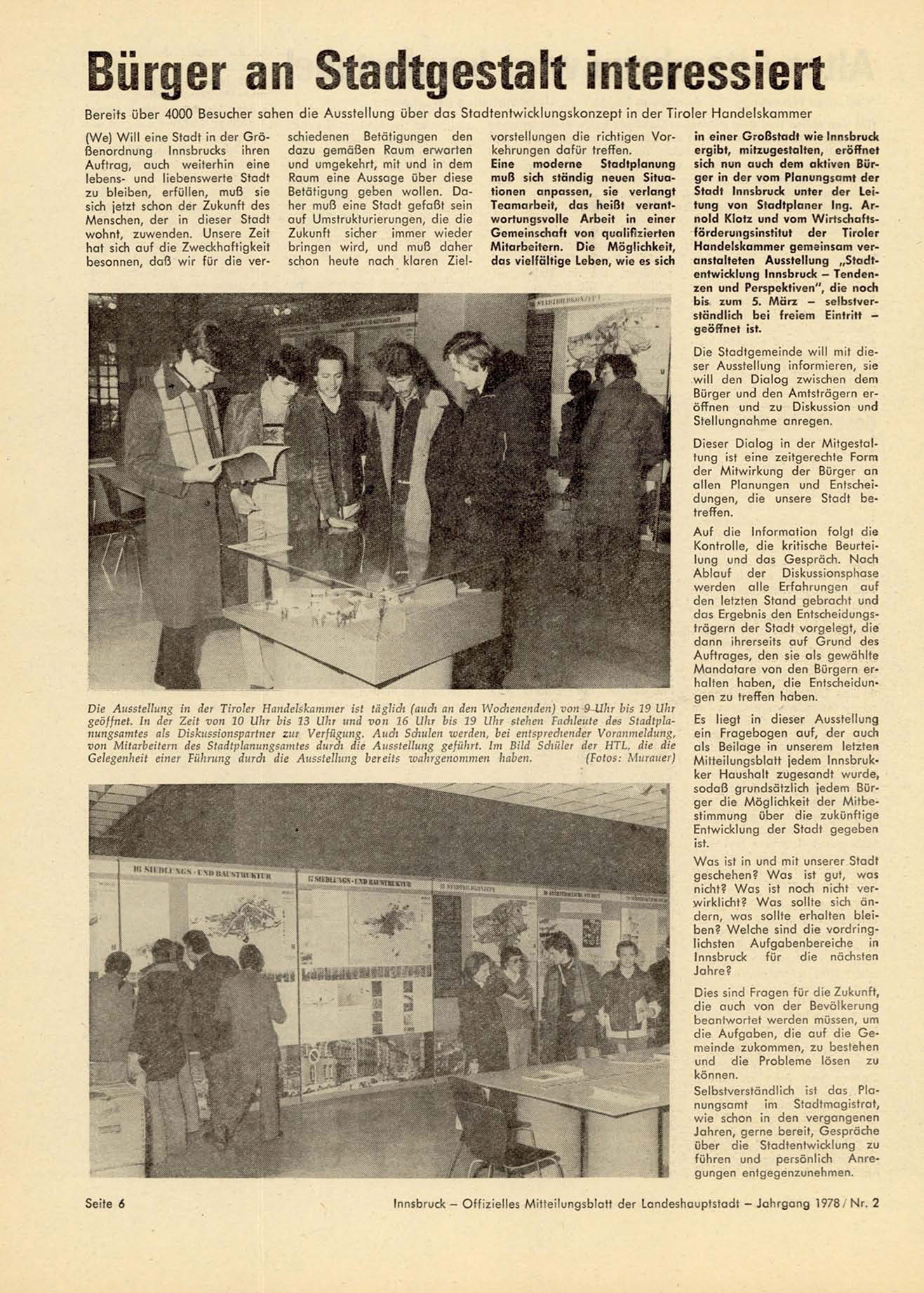 Handelskammer gemeinsam veranstalteten Ausstellung „Stadtentwicklung Innsbruck - Tendenzen und Perspektiven", die noch
