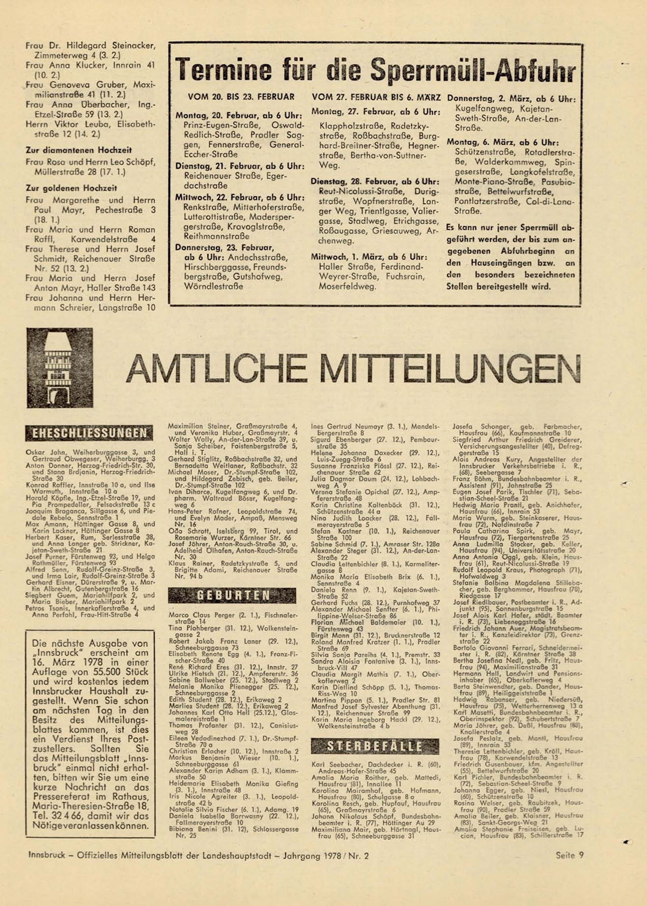 ger W e g , Trientlgasse, V a l t e r gasse, S t a d l w e g , Etrichgasse,