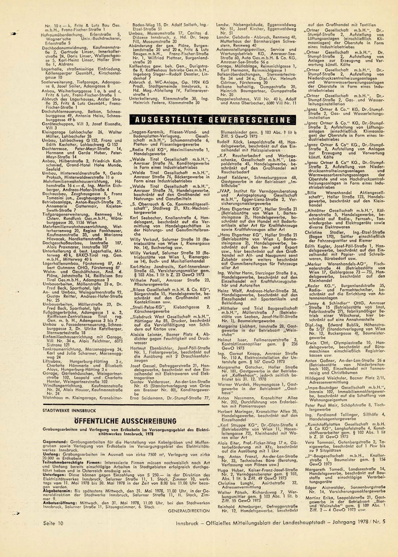Innsbruck - O f f i z i e l l e s M i t t e i l u n g s b l a t t d e r L a n d e s h a u p t s t a d t - J a h r g a n g 1978