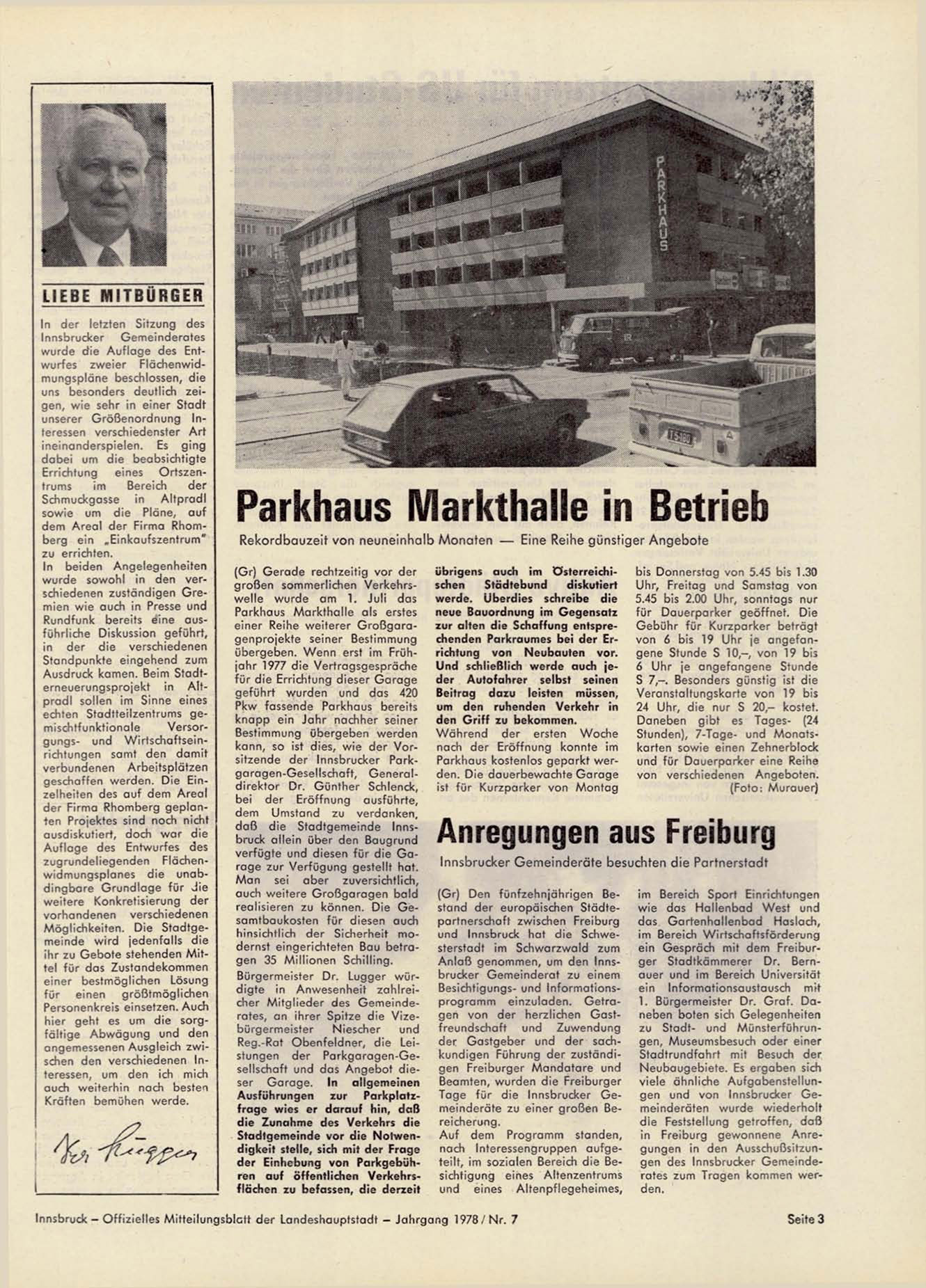 Innsbruck - O f f i z i e l l e s M i t t e i l u n g s b l a t t d e r L a n d e s h a u p t s t a d t - J a h r g a n g 1978 / N r . 7