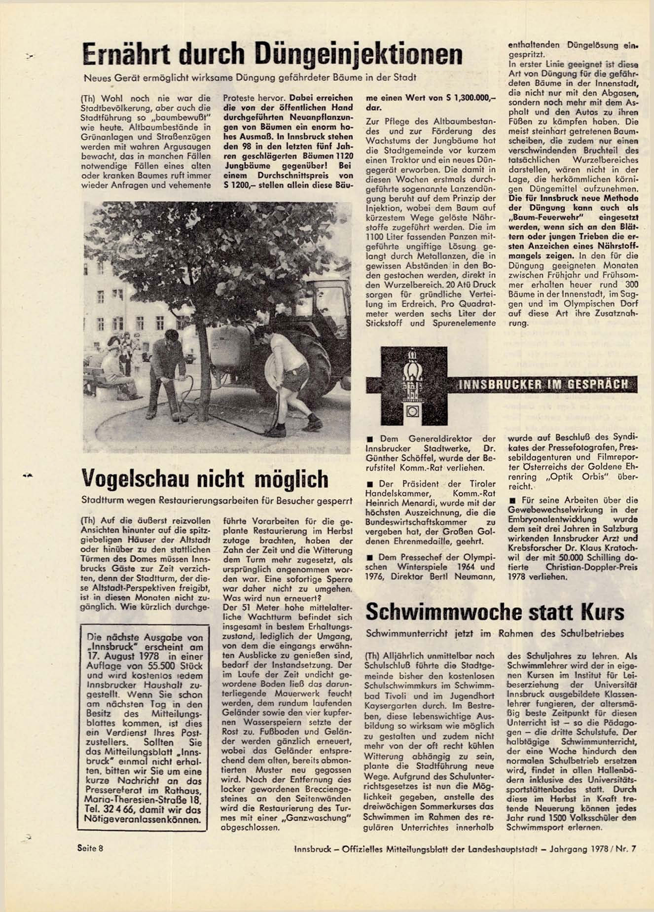 Innsbruck - O f f i z i e l l e s M i t t e i l u n g s b l a t t d e r L a n d e s h a u p t s t a d t - J a h r g a n g 1978 / N r . 7