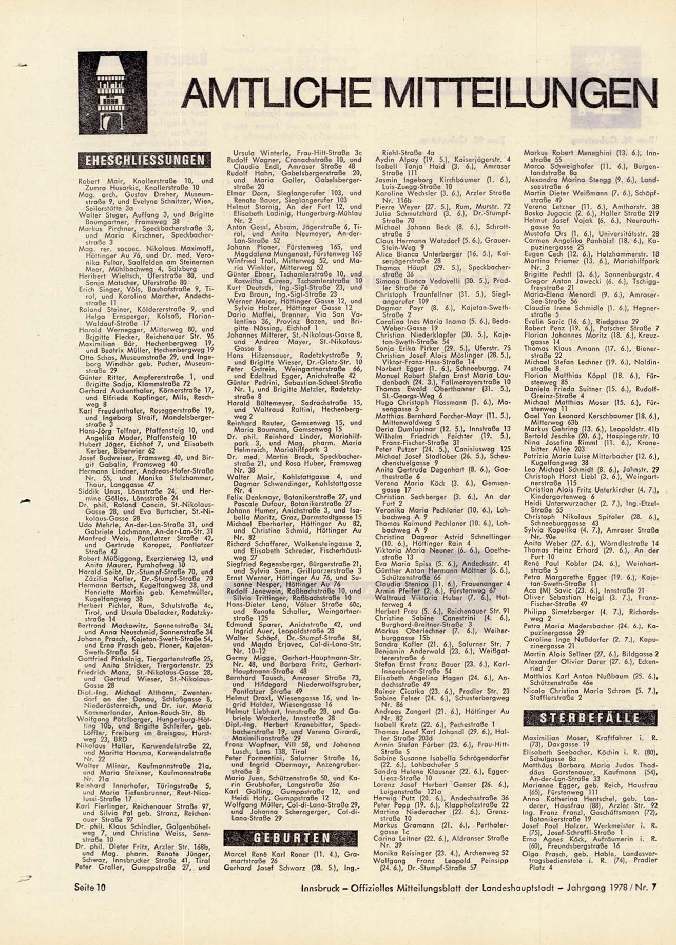 Innsbruck - Offizielles Mitteilungsblatt der Landeshauptstadt - Jahrgang 1978 / N r . 7