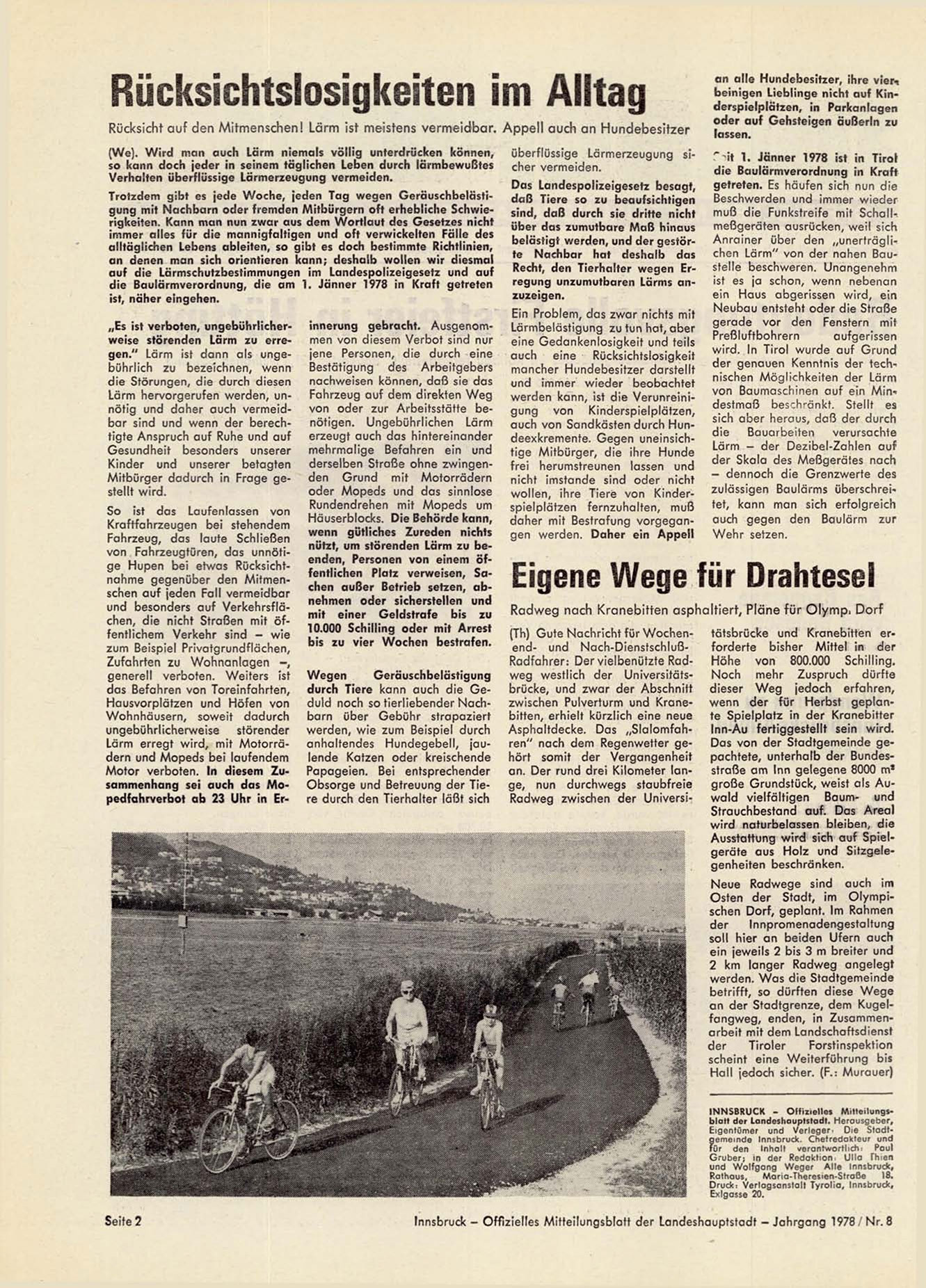 Innsbruck - Offizielles Mitteilungsblatt der Landeshauptstadt - Jahrgang 1978 / Nr. 8