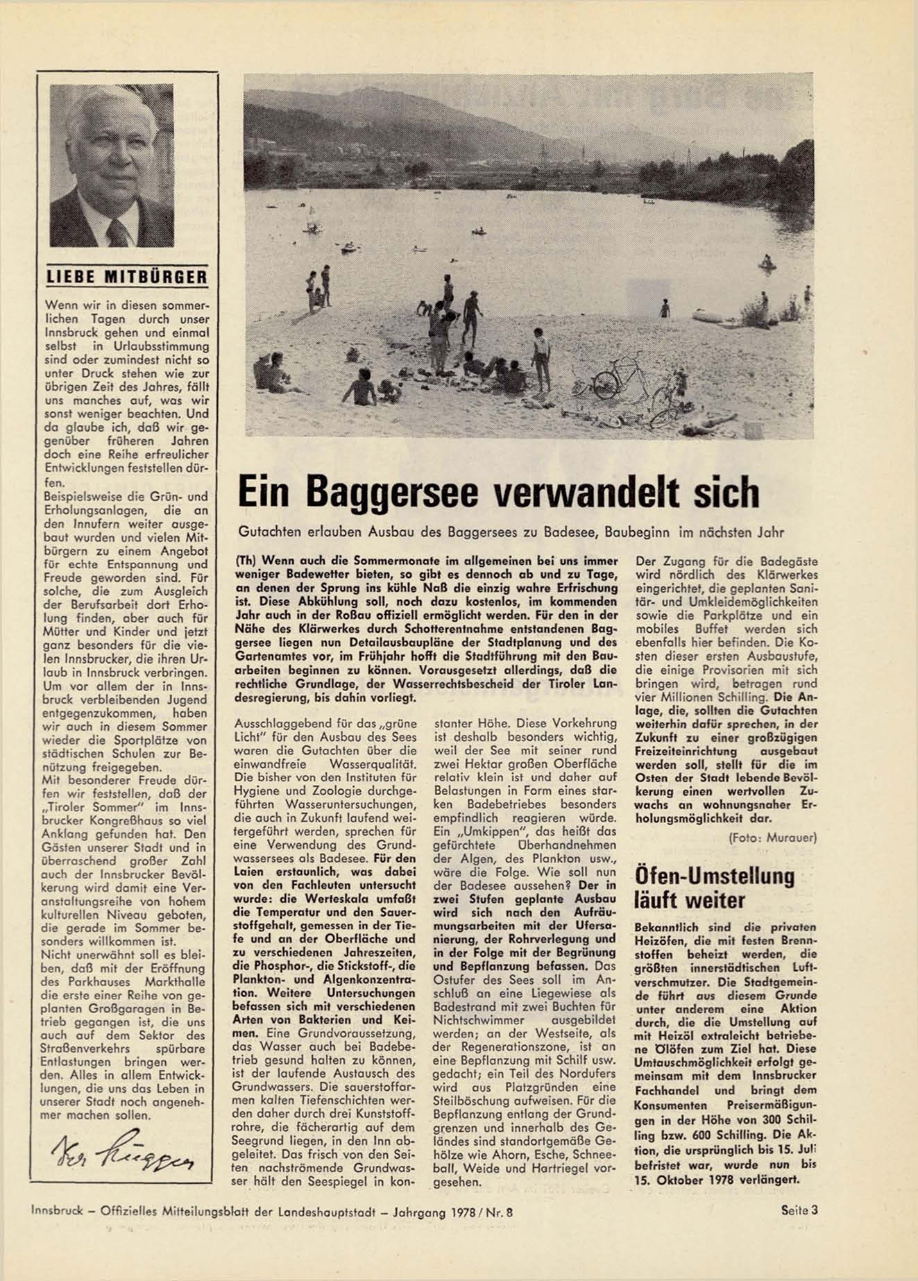 Innsbruck - Offizielles Mitteilungsblatt der Landeshauptstadt - Jahrgang 1978/Nr. 8