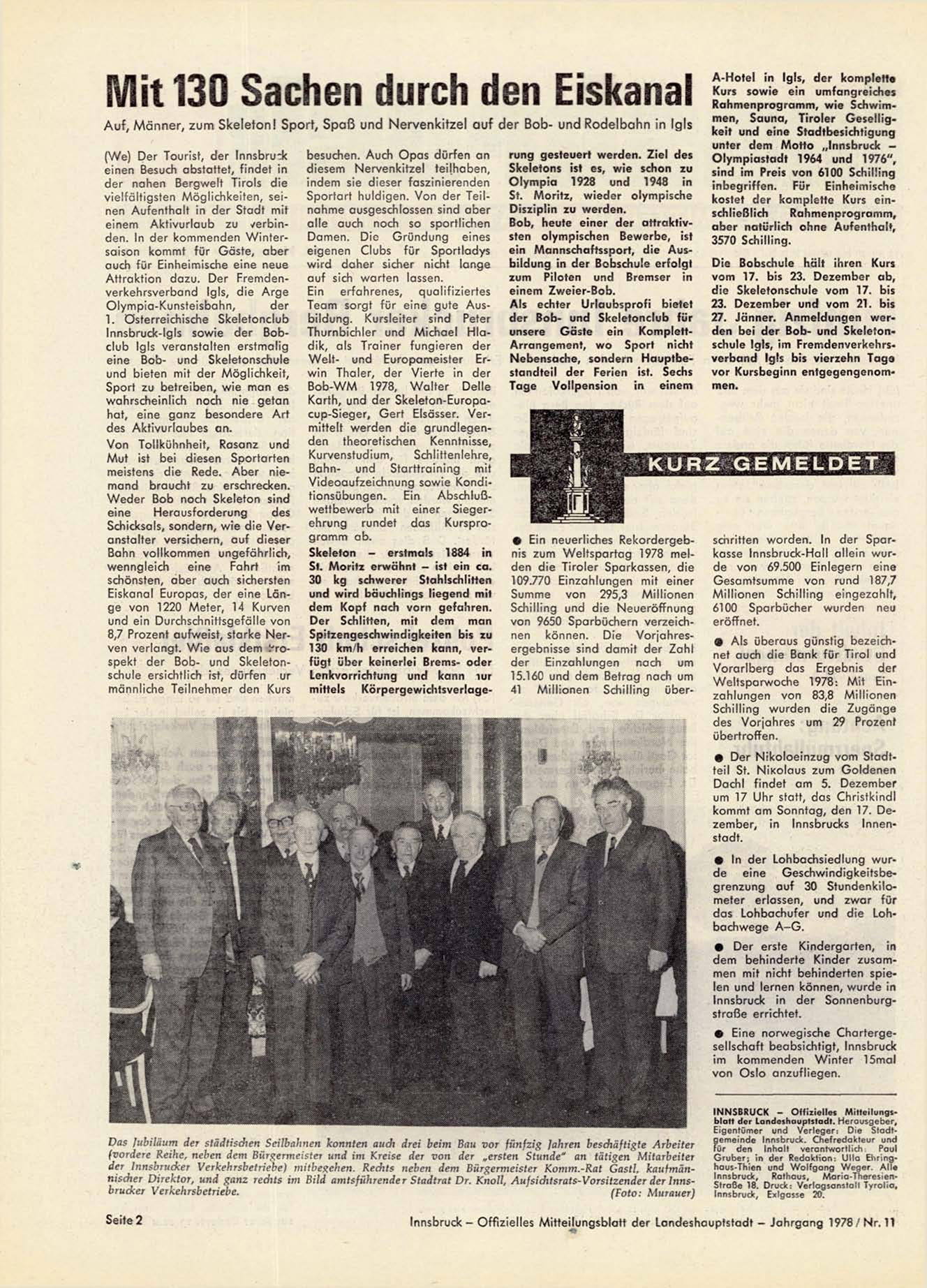 Innsbruck - O f f i z i e l l e s M i t t e i l u n g s b l a t t der L a n d e s h a u p t s t a d t - J a h r g a n g 1 9 7 8 / N r . 11